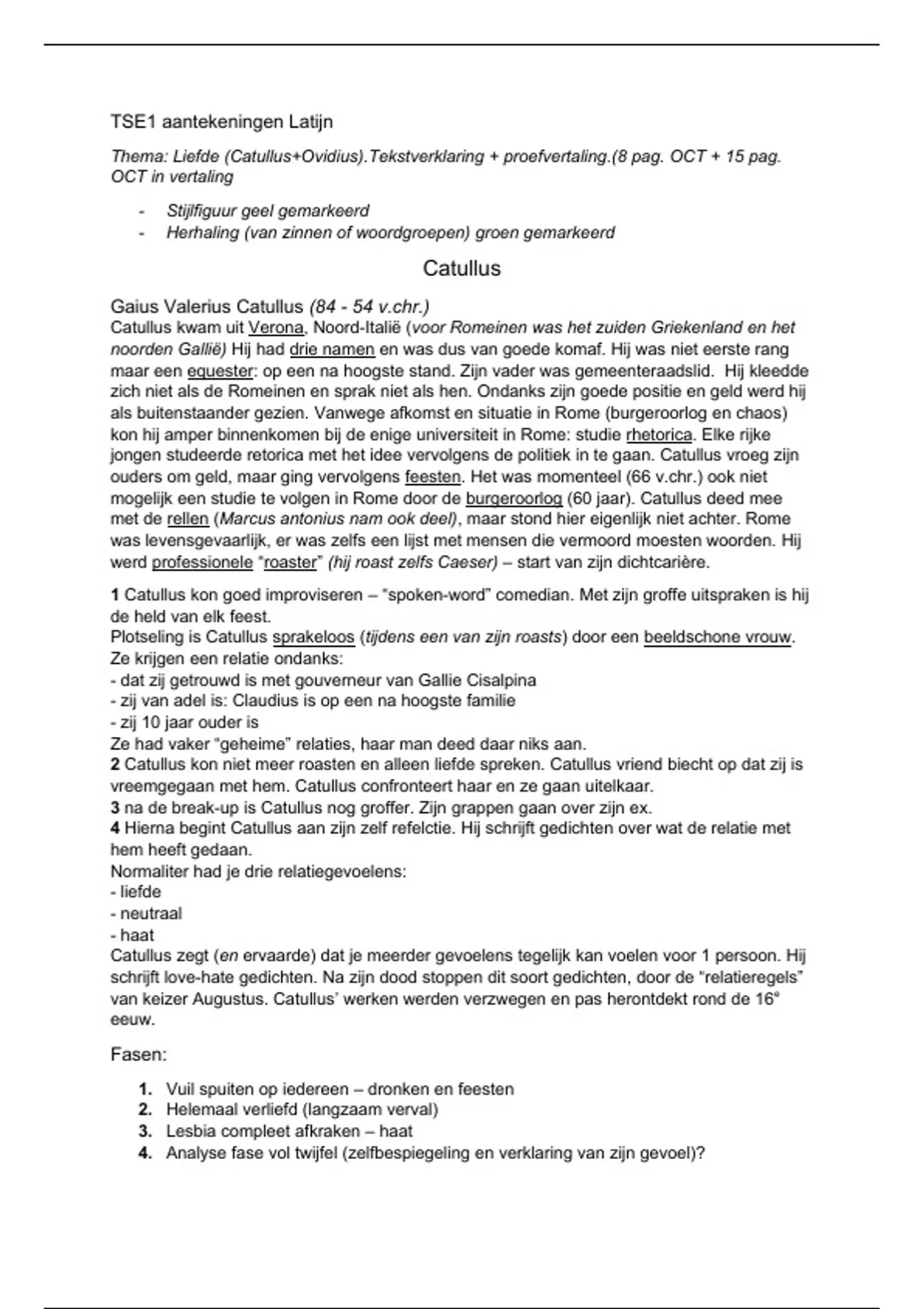Thema: Liefde (Catullus+Ovidius).Tekstverklaring + proefvertaling.(8 pag. OCT + 15 pag.