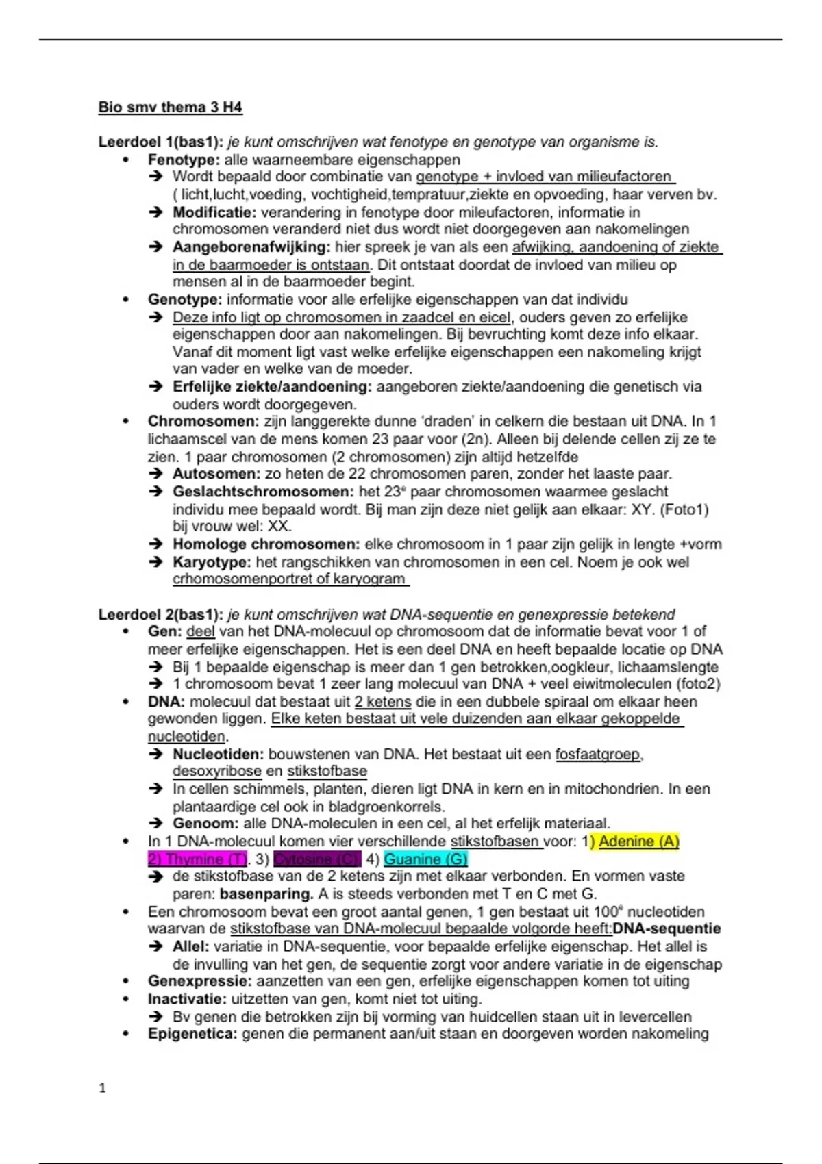 Leerdoel 2(bas1): je kunt omschrijven wat DNA-sequentie en genexpressie betekend