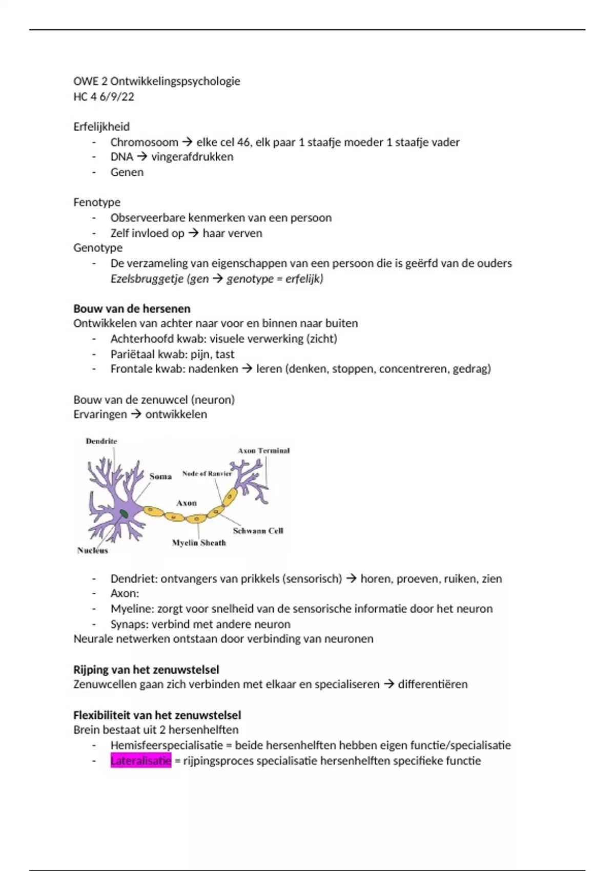 - Myeline: zorgt voor snelheid van de sensorische informatie door het neuron