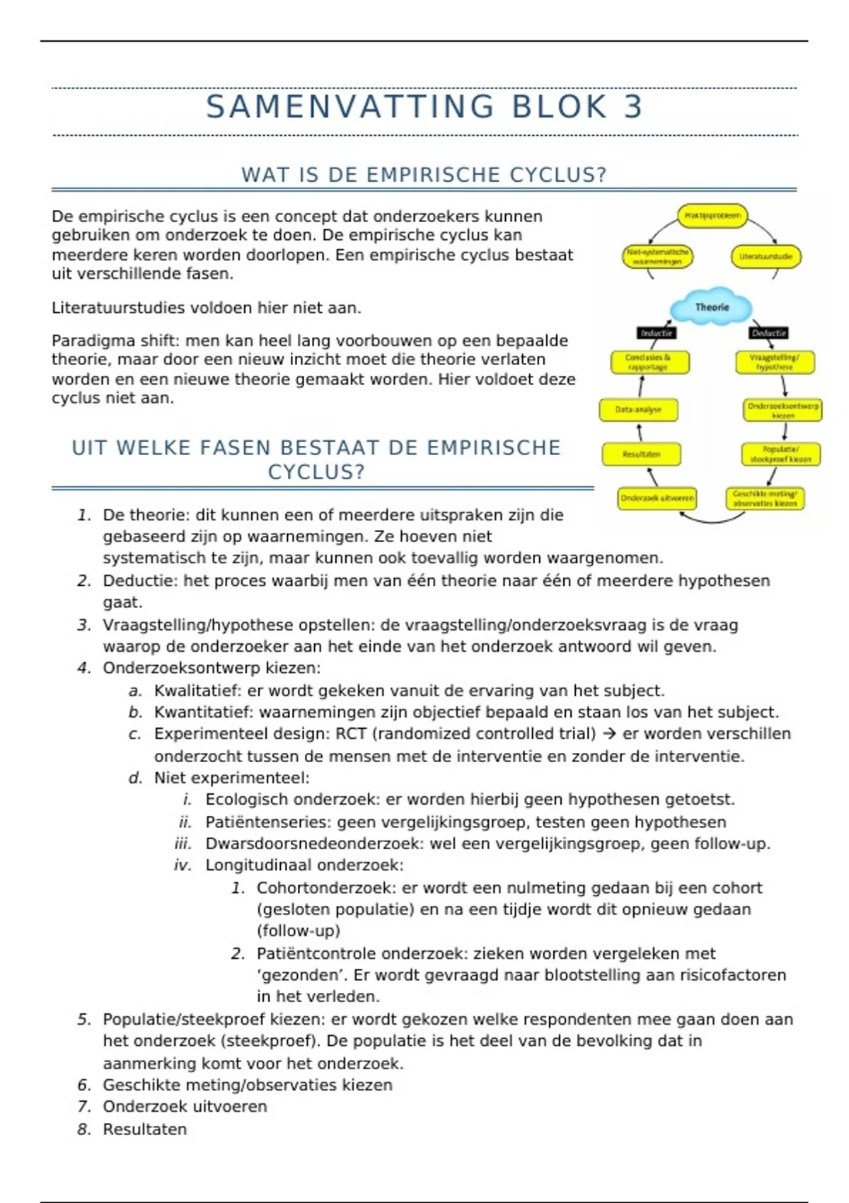 Samenvatting - Blok 3: introductie wetenschappelijk onderzoek (GZW1023)