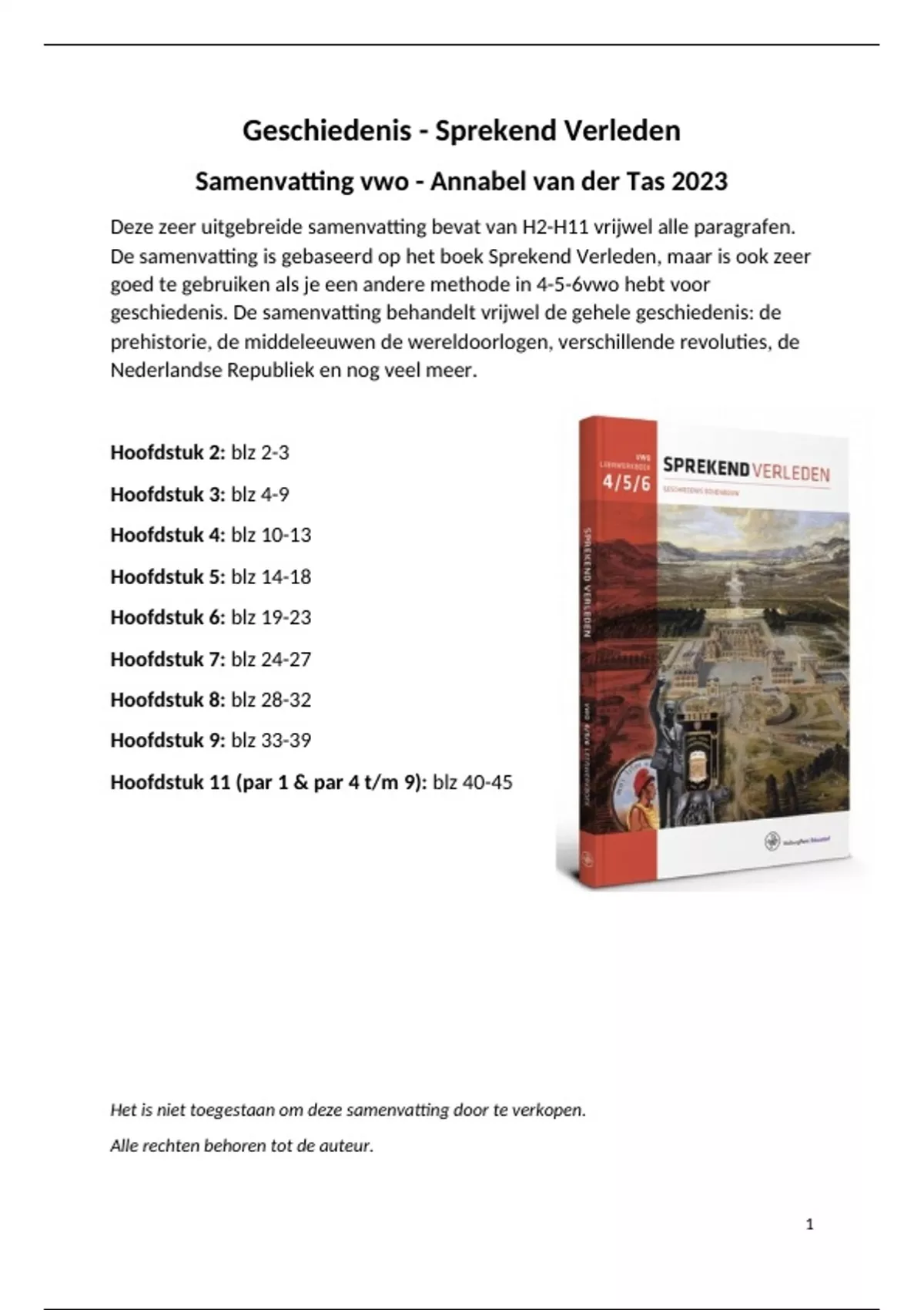 Het is niet toegestaan om deze samenvatting door te verkopen.