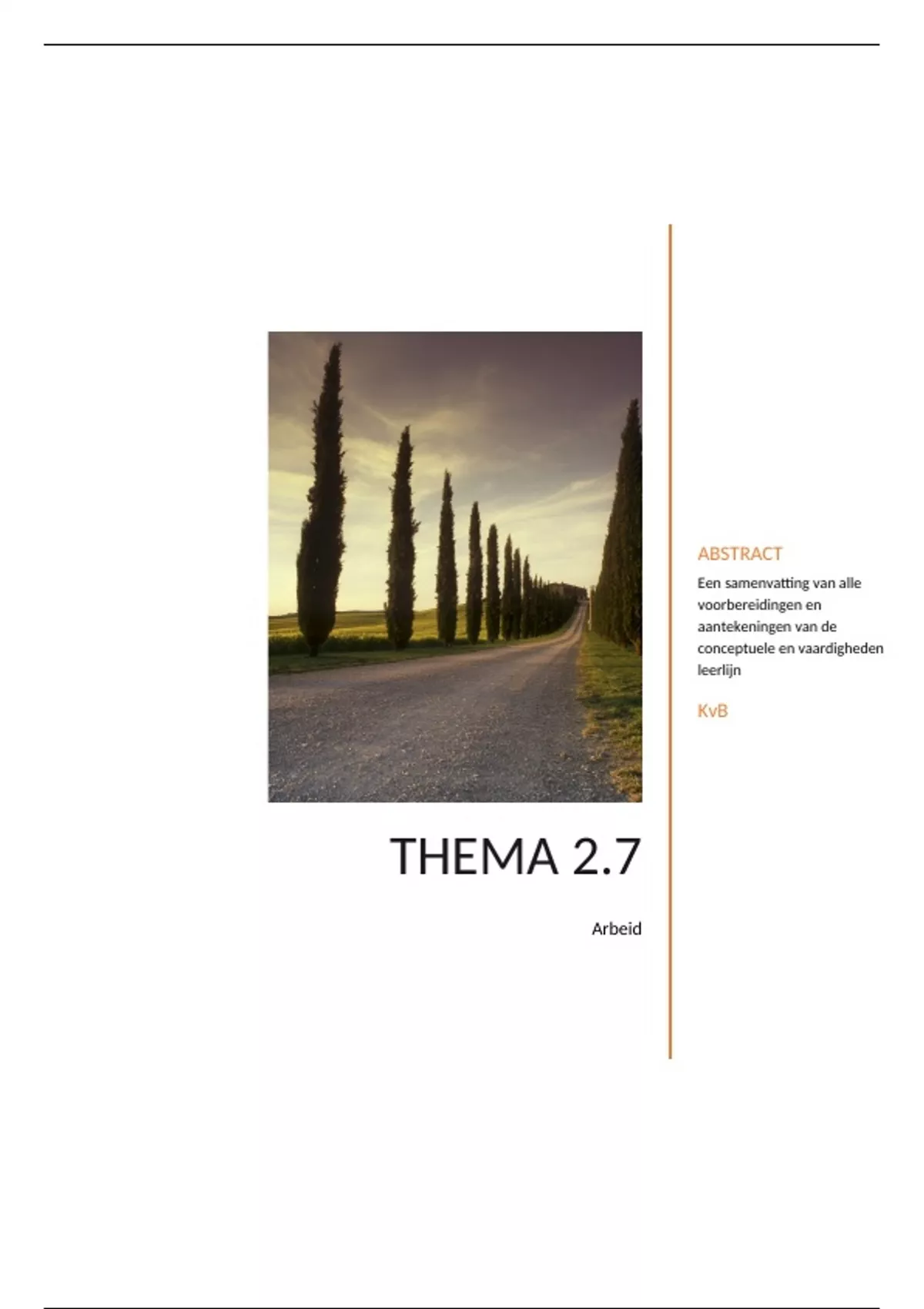 In dit document staat een samenvatting van alle voorbereidingen en aantekeningen van de conceptuele en vaardigheden leerlijn van thema 2.7.