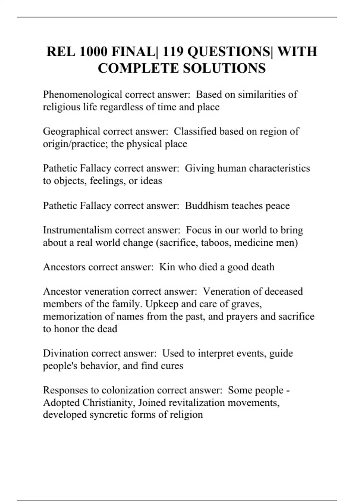 REL 1000 FINAL| 119 QUESTIONS| WITH COMPLETE SOLUTIONS