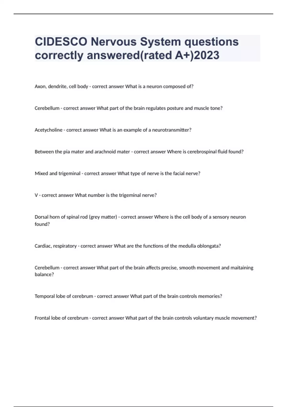 cidesco nervous system questions correctly answeredrated a2023