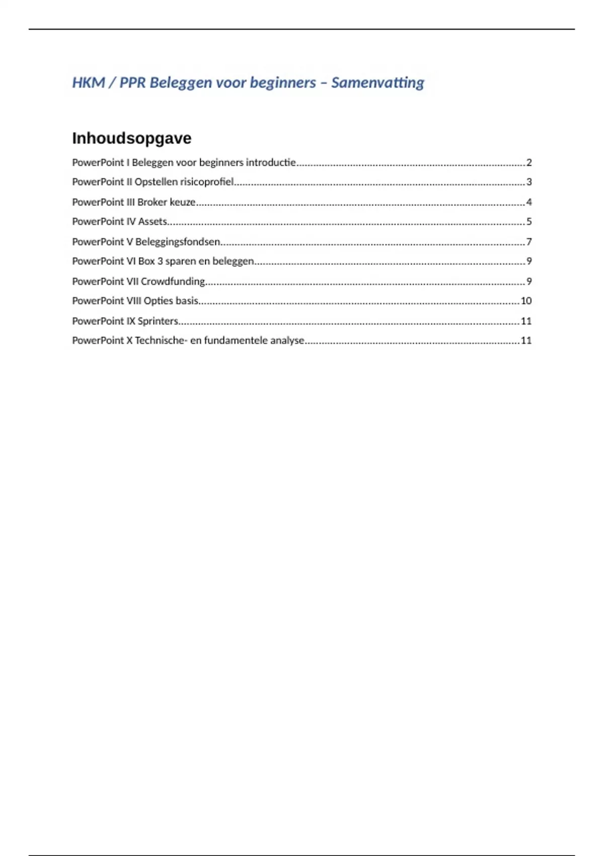 PowerPoint X Technische- en fundamentele analyse............................................................................11