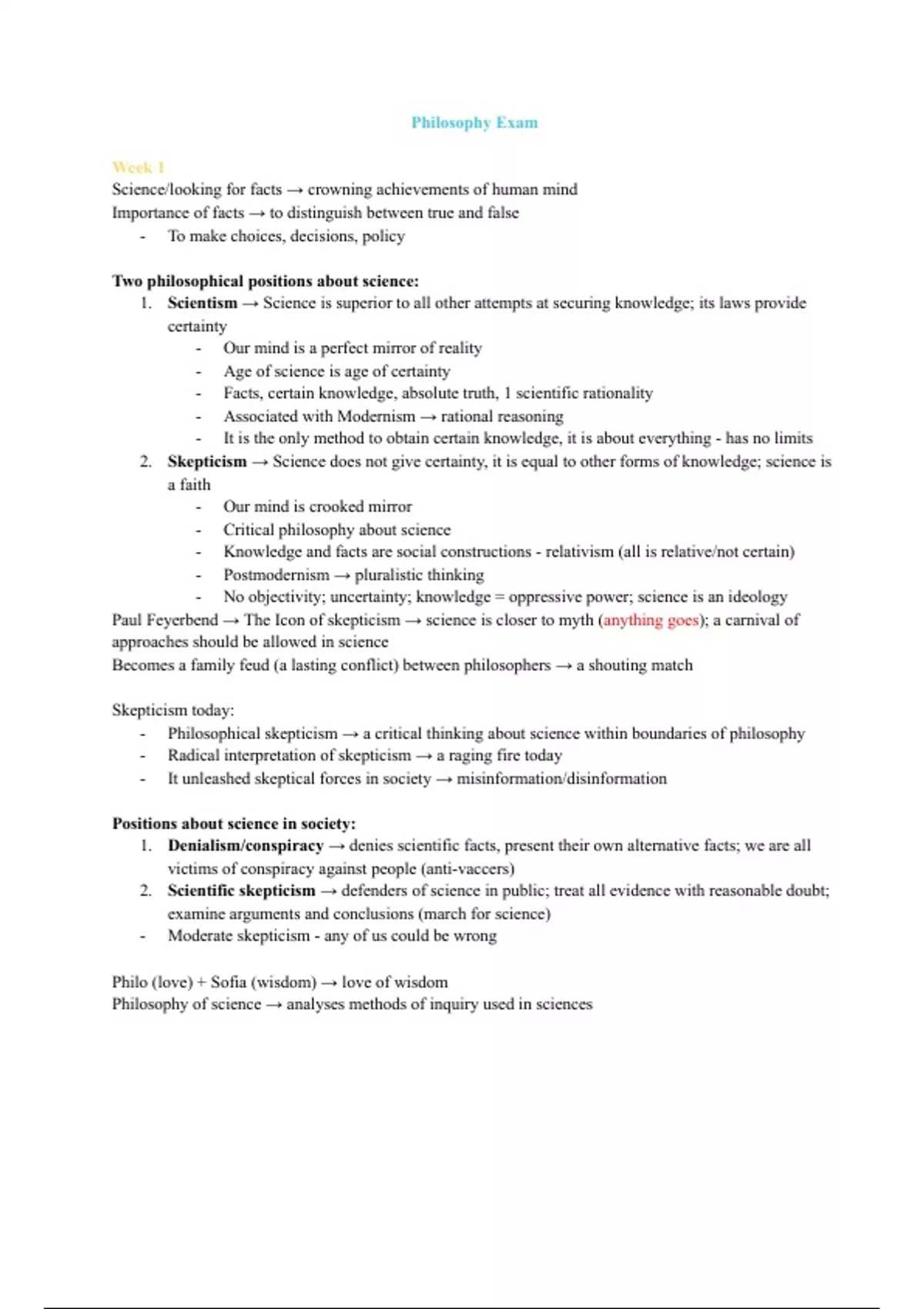 2. Skepticism → Science does not give certainty, it is equal to other forms of knowledge; science is
