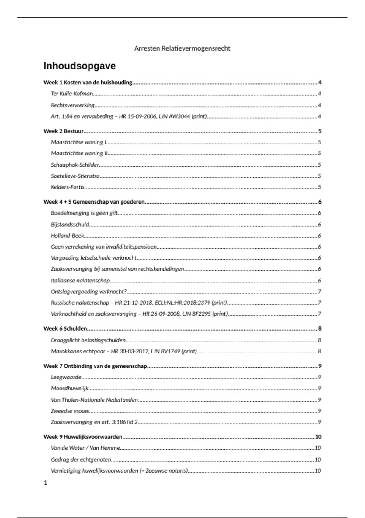 Week 9 Huwelijksvoorwaarden.................................................................................................................... 10