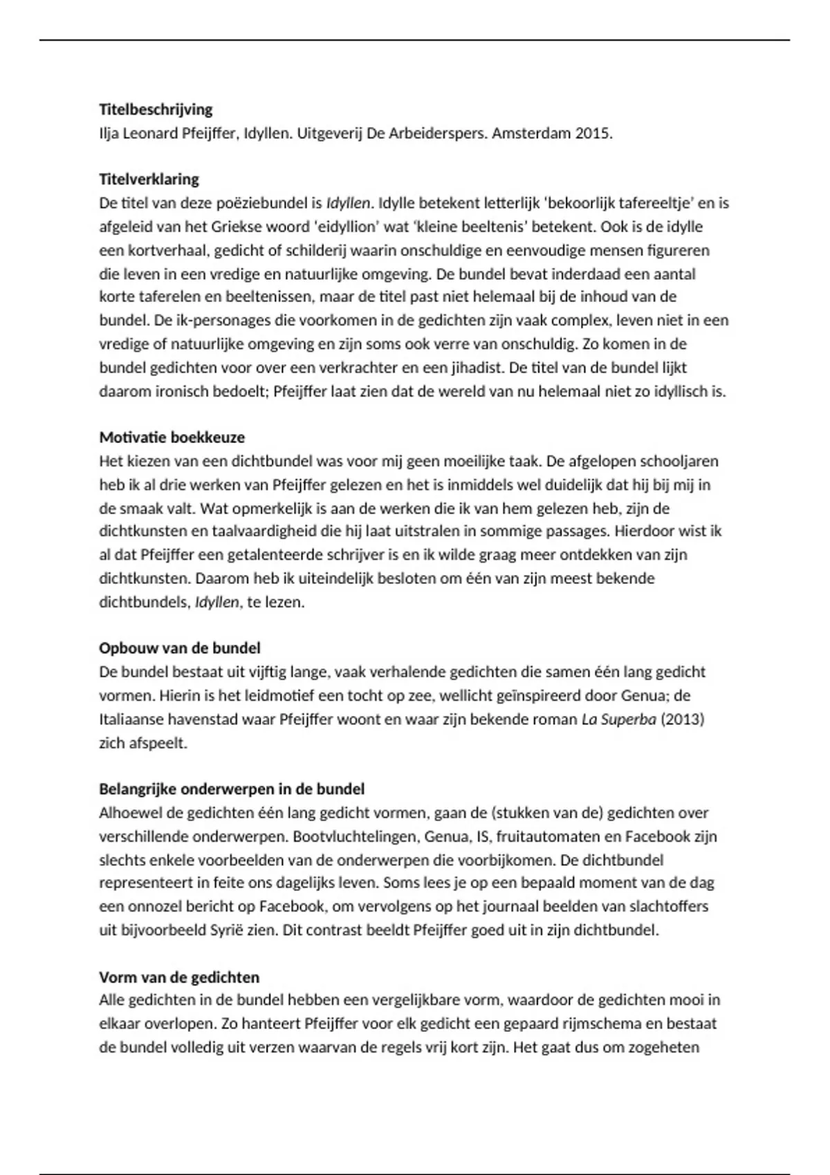 6 VWO poezië boekverslag Idyllen Ilja Leonard Pfeijffer