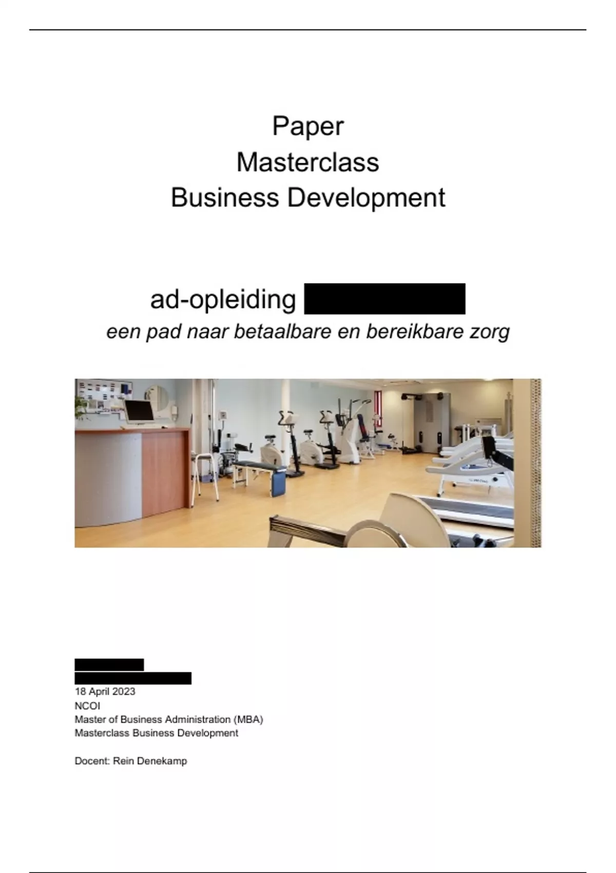 Dit paper is door geschreven als eindopdracht van de masterclass Business Developmant,