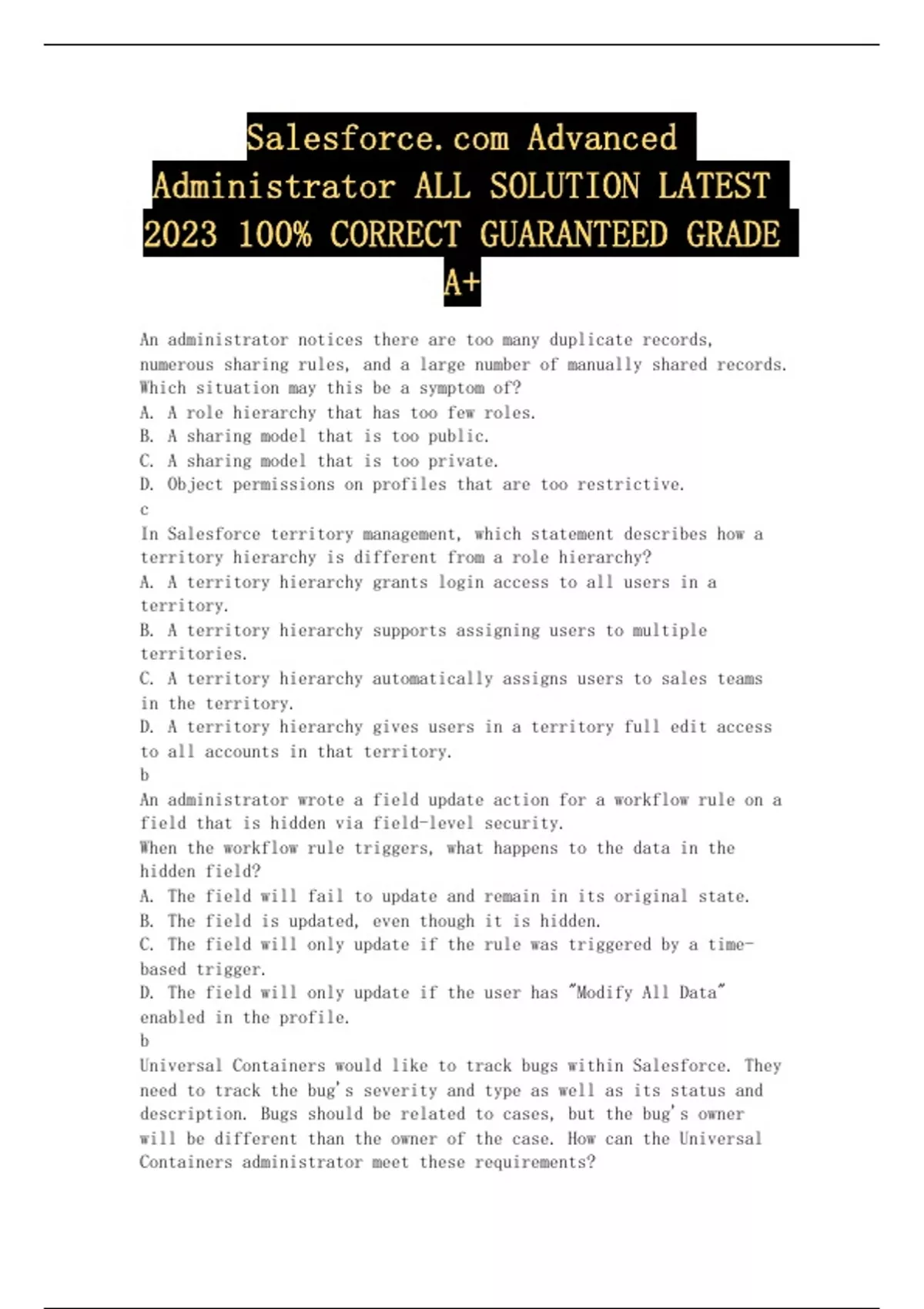 Salesforce.com Advanced Administrator ALL SOLUTION LATEST 2023 100% CORRECT GUARANTEED GRADE A+
