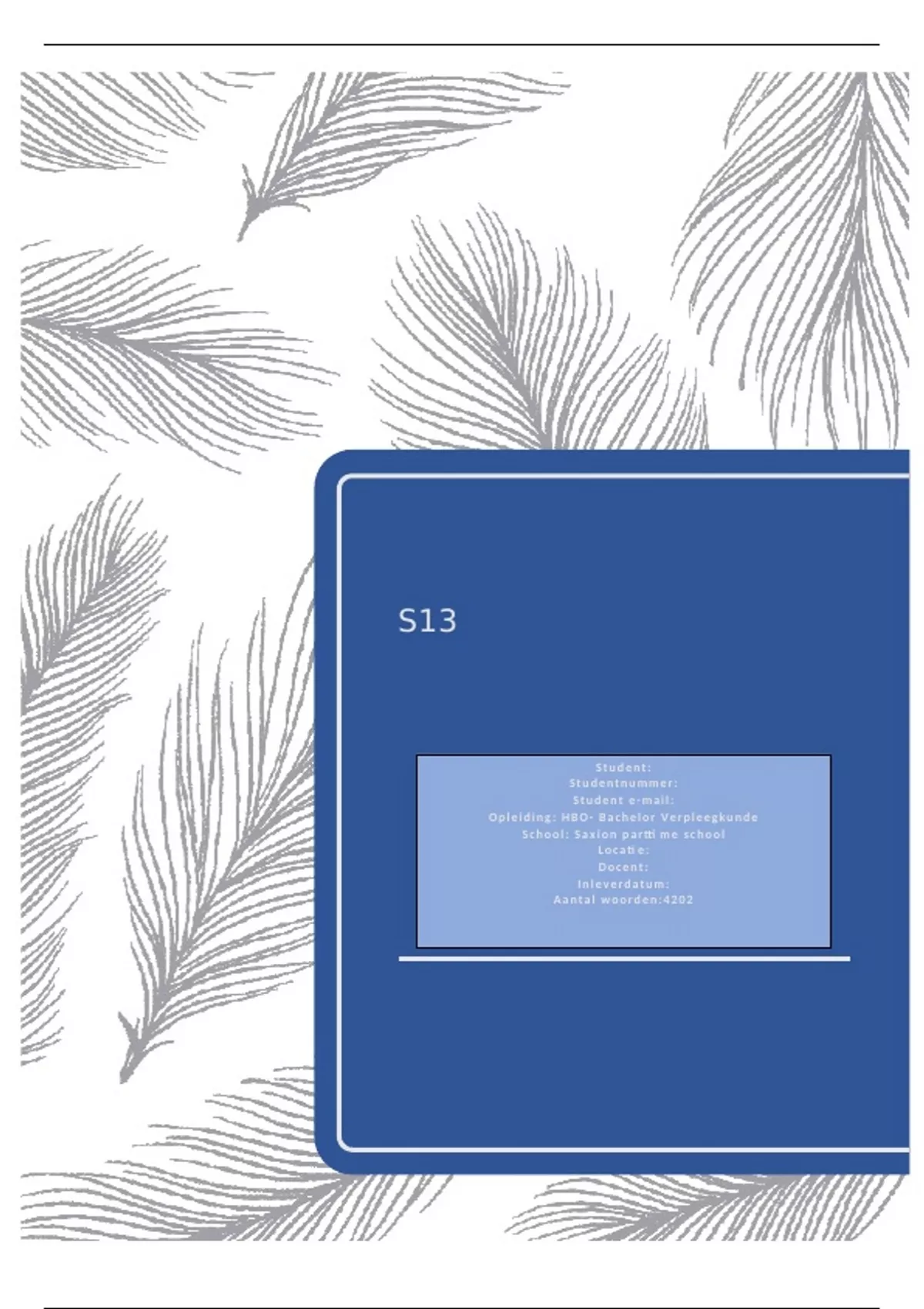 Mijn naam is xxxx, student verpleegkunde bij Saxion Parttime School in Enschede. Voor u ligt mijn