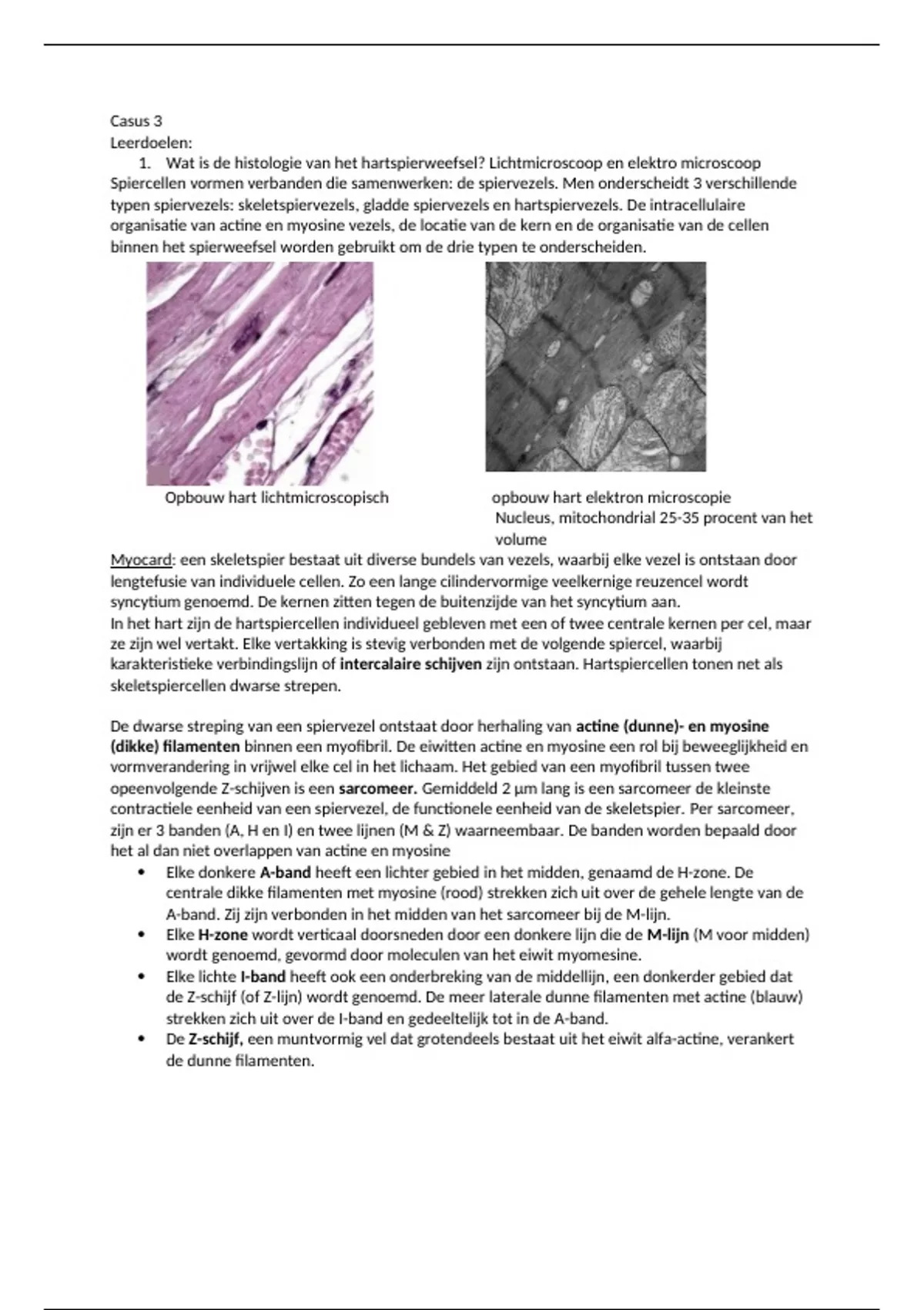 Uitwerking van casus 3 van blok 1.2 circulatie en ademhaling met onder andere het hartspierweefsel, elektromechanische koppeling, frank-starlingmechanisme, transport Ca2+ en bloedmarkers.