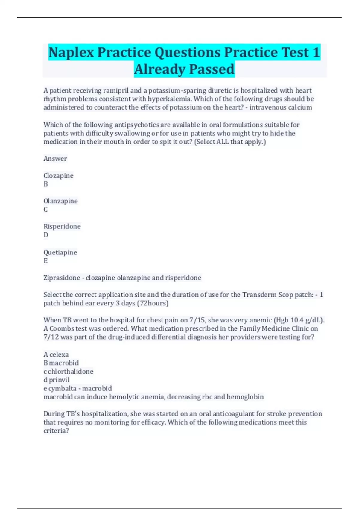 Naplex Practice Questions Practice Test 1 Already Passed