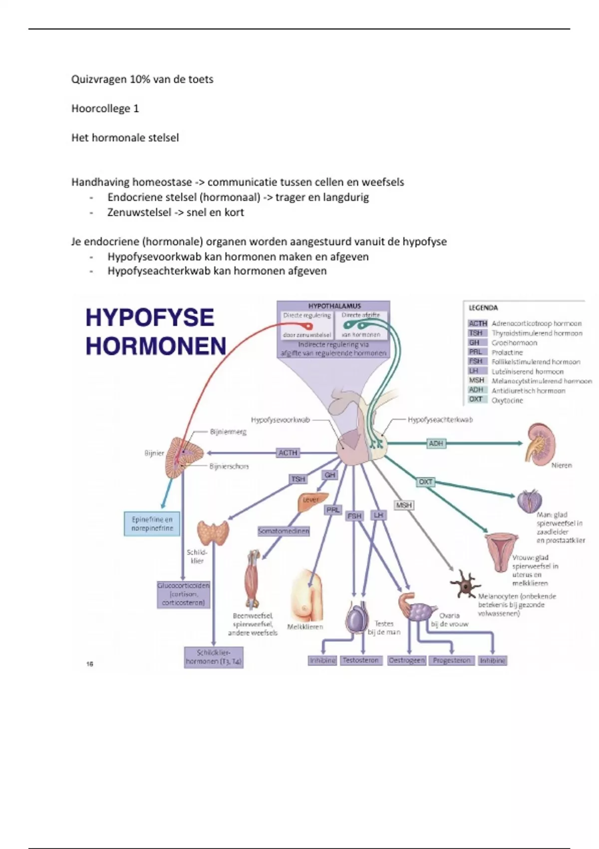 - ACTH -> stimuleert de bijnieren om het stresshormoon cortisol aan te maken, hoe