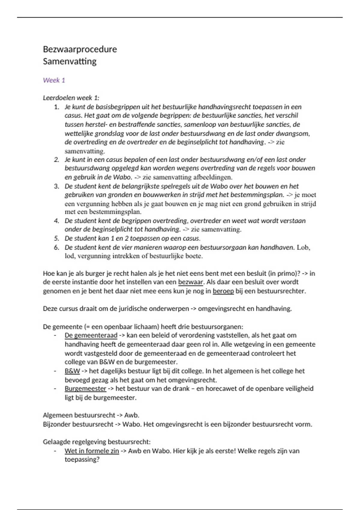 Alle leerdoelen van het tentamen bezwaarprocedure, hbo-rechten aan de Hogeschool Utrecht