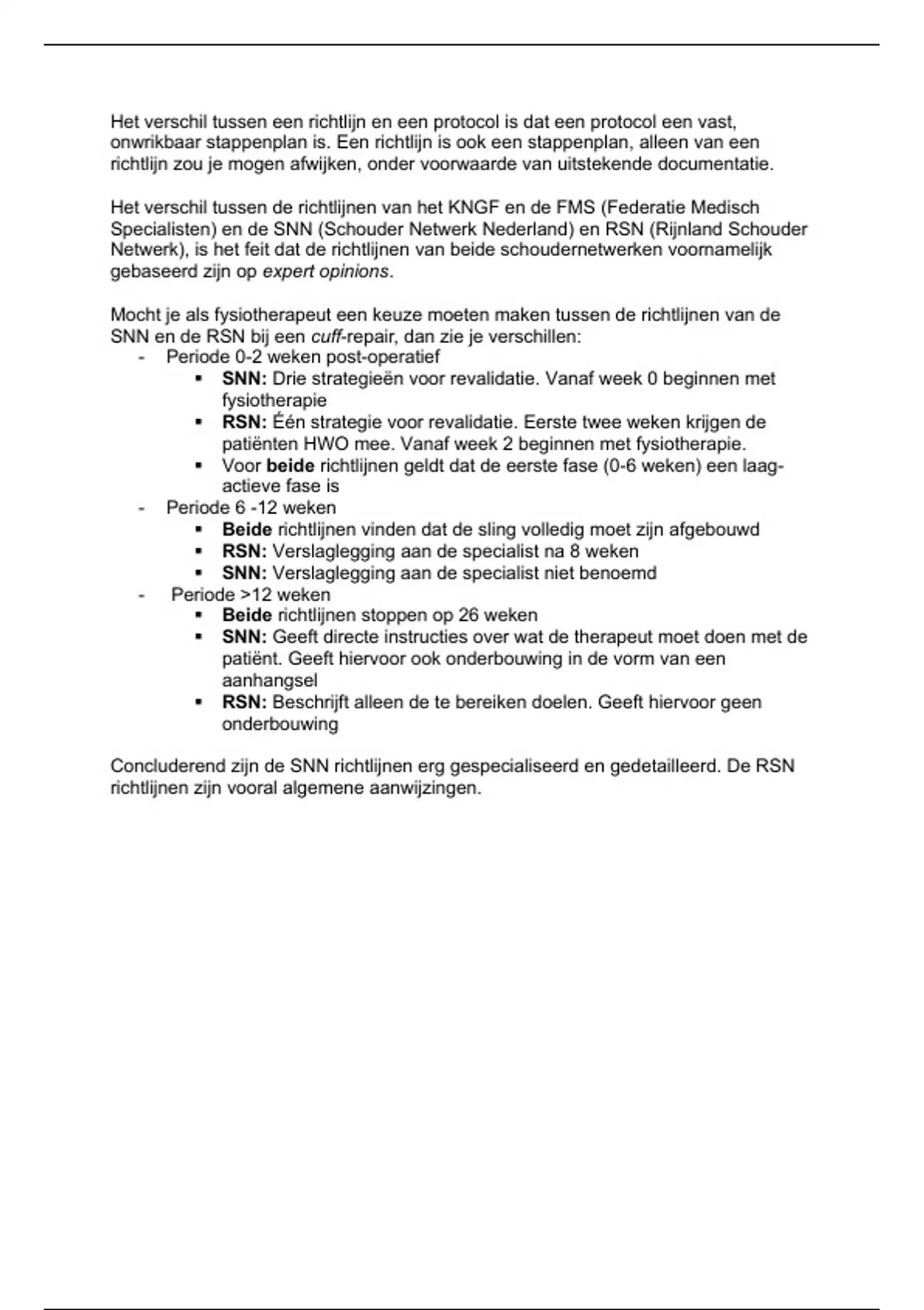Concluderend zijn de SNN richtlijnen erg gespecialiseerd en gedetailleerd. De RSN
