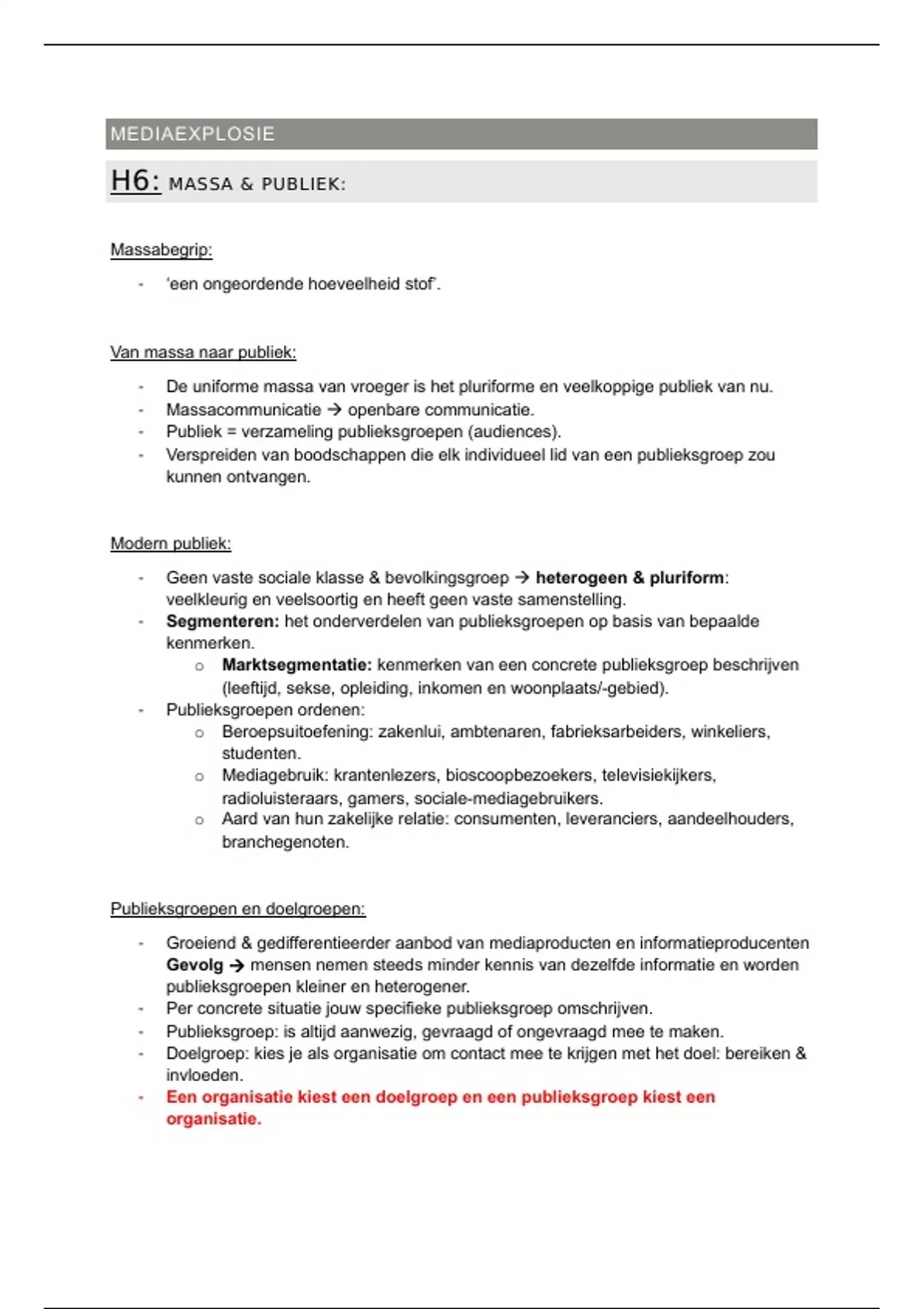 o Marktsegmentatie: kenmerken van een concrete publieksgroep beschrijven