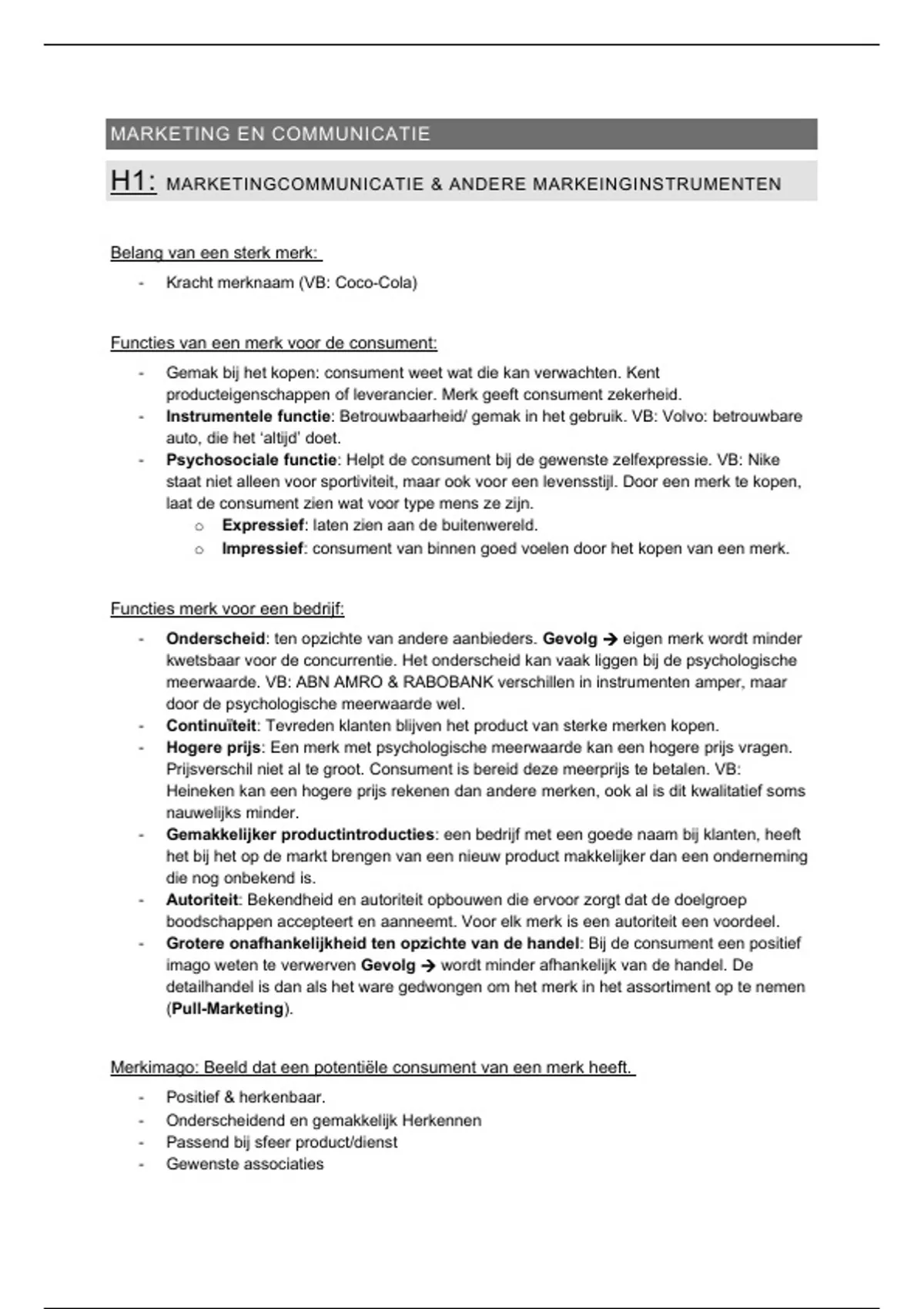 H1: MARKETINGCOMMUNICATIE & ANDERE MARKEINGINSTRUMENTEN