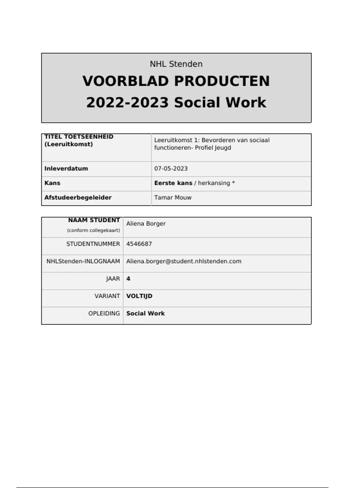 stand gekomen in het kader van mijn afstuderen aan de opleiding Social Work (2022 t/m