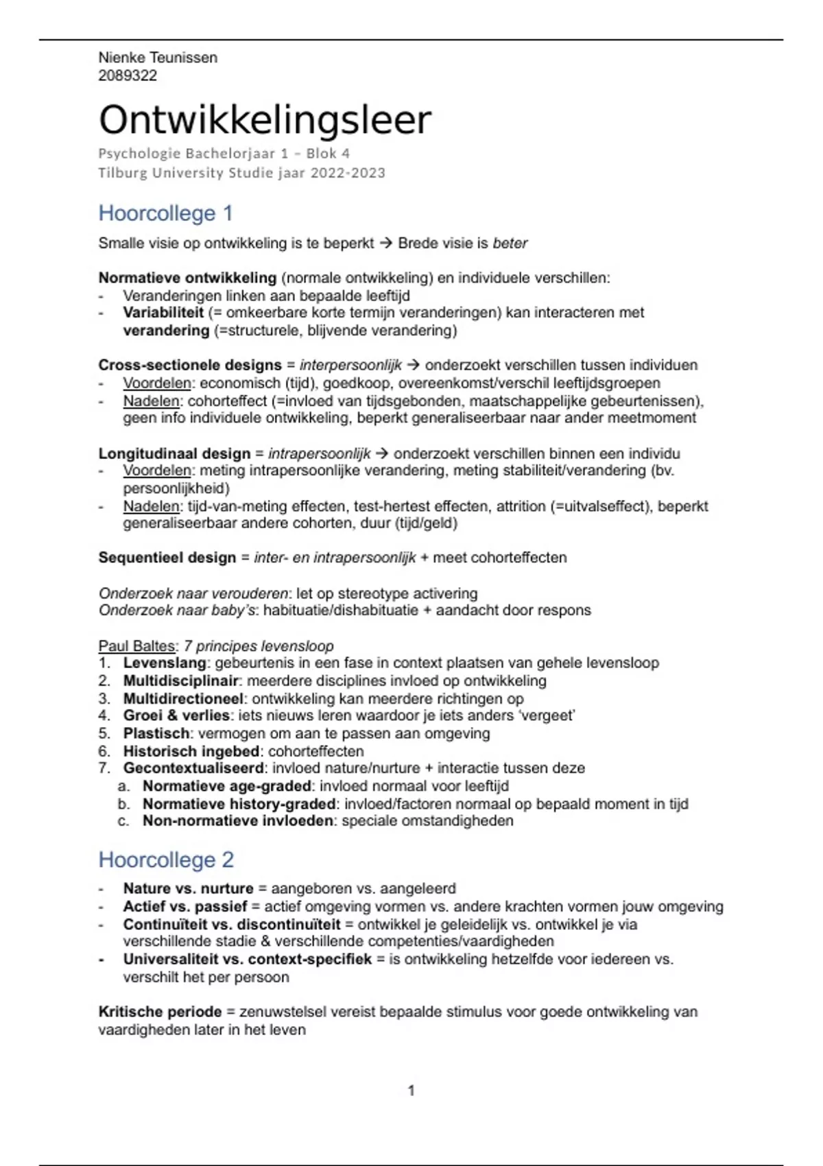 College 2: belangrijkste theorieën in de ontwikkelingspsychologie