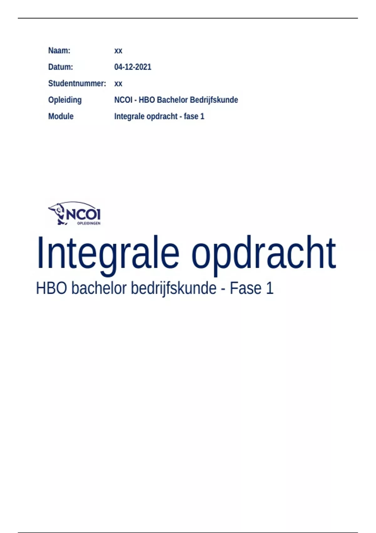 ,Integrale opdracht fase 1 HBO Bedrijfskunde