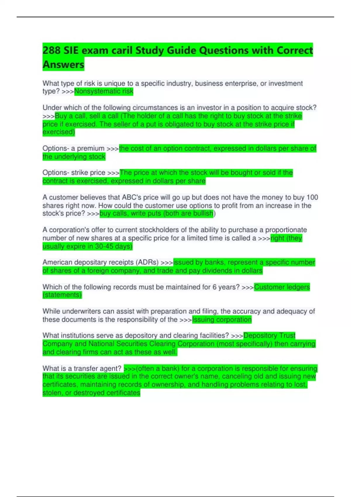 288 sie exam caril study guide questions with corr