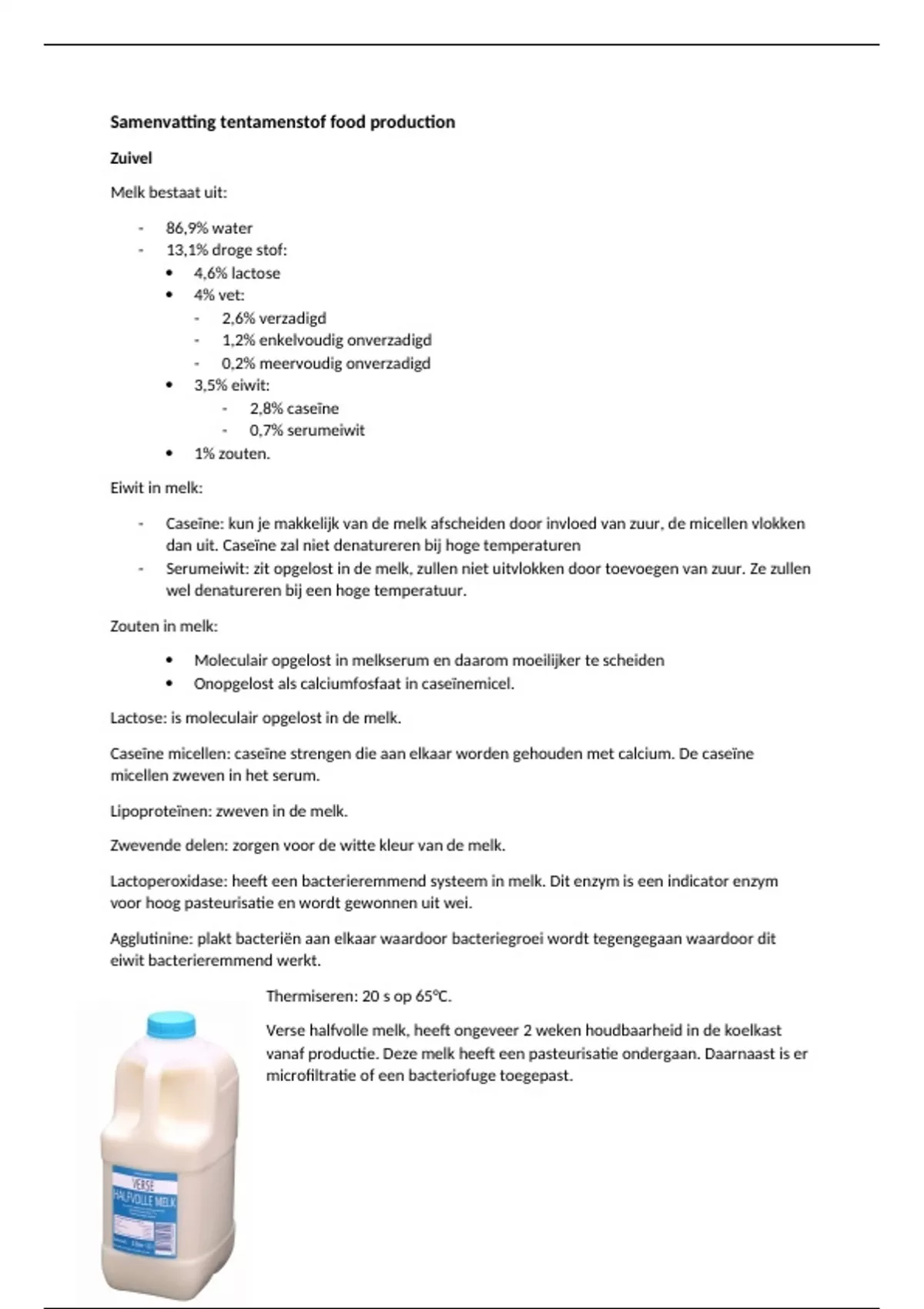 Samenvatting tentamenstof food production zuivel, dranken, groente en fruit, bakkerij en vlees