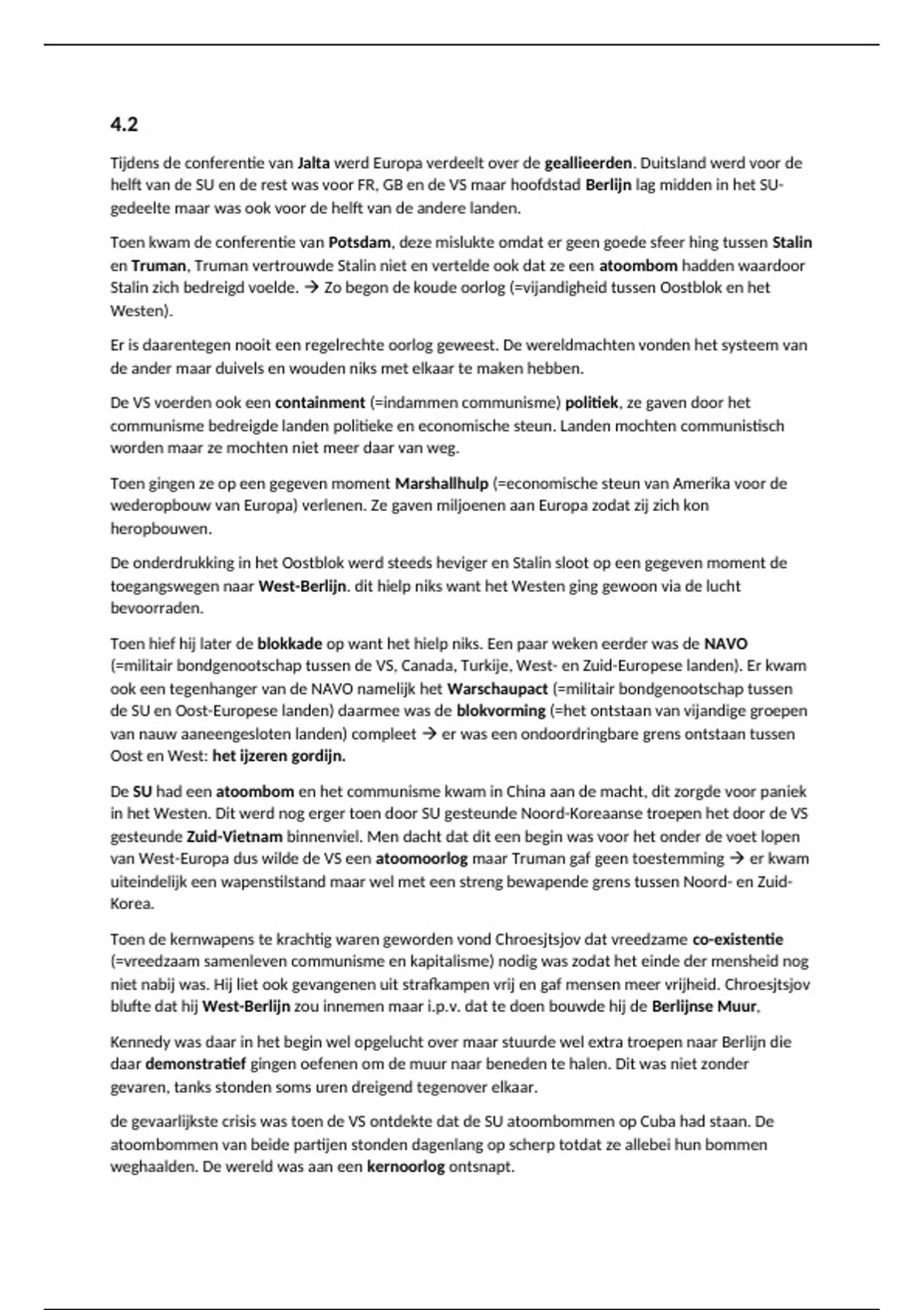 Stalin zich bedreigd voelde. Zo begon de koude oorlog (=vijandigheid tussen Oostblok en het