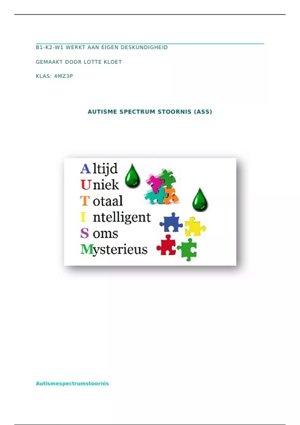 Autisme (officieel 'autismespectrumstoornis', kortweg ASS) is een ontwikkelingsstoornis.