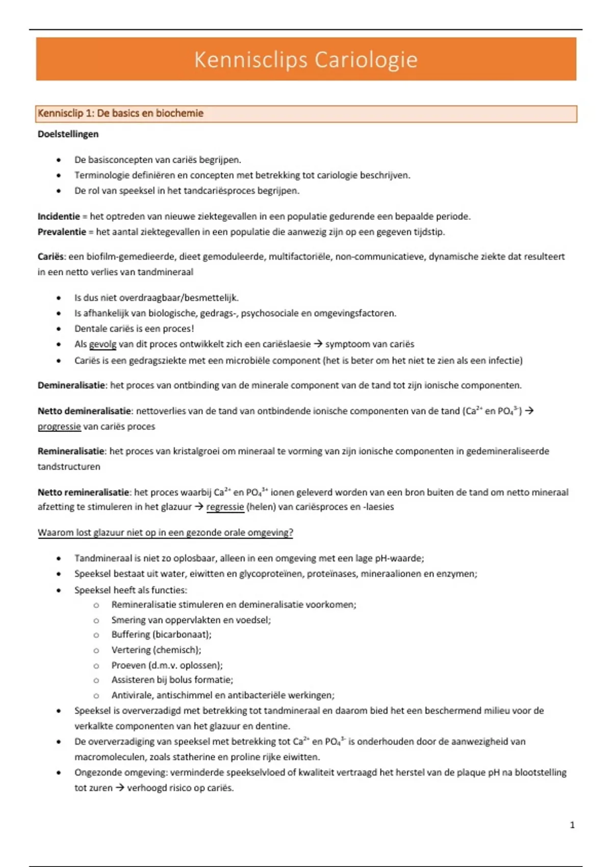 Samenvatting kennisclips Cariologie (cyclus 1.2.4)