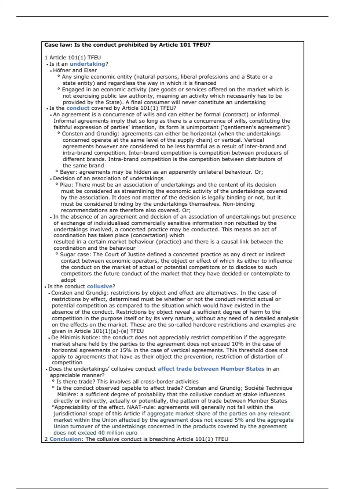Case law: Is the conduct prohibited by Article 101 TFEU?
