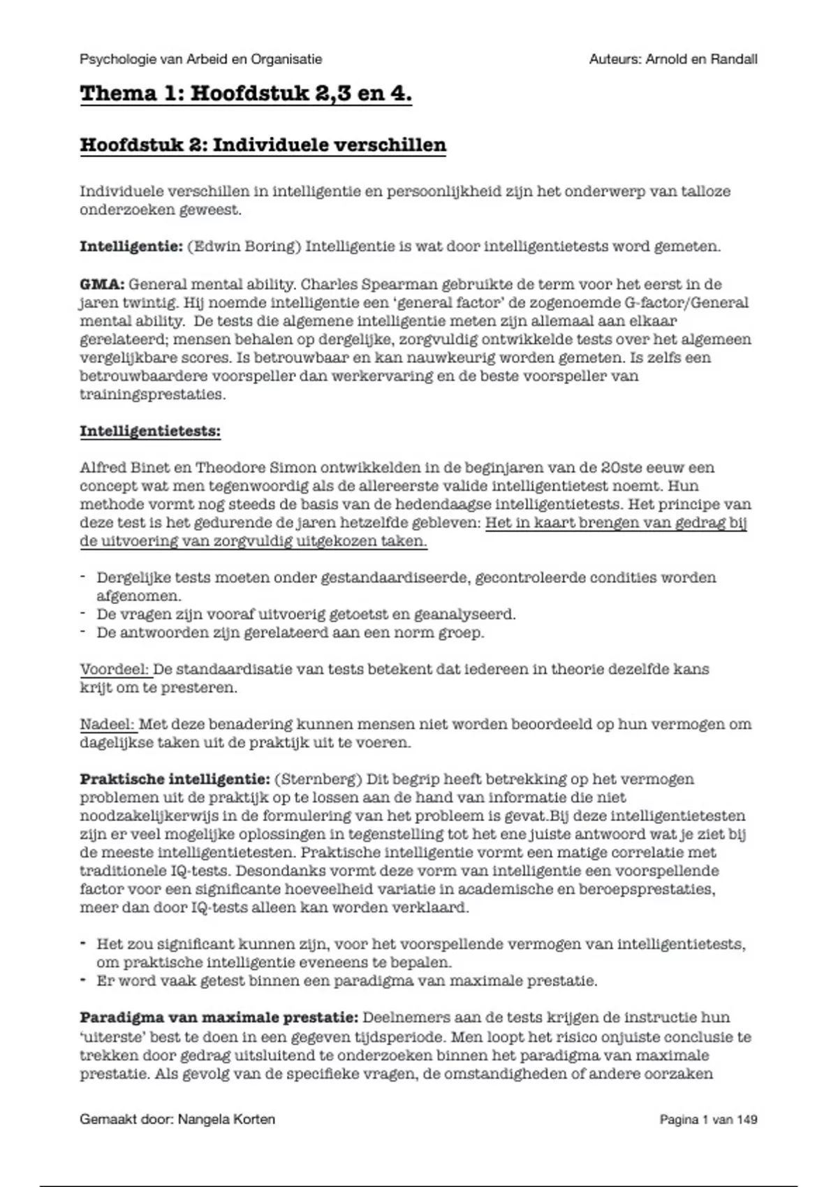 ,Psychologie van Arbeid en Organisatie Auteurs: Arnold en Randall
