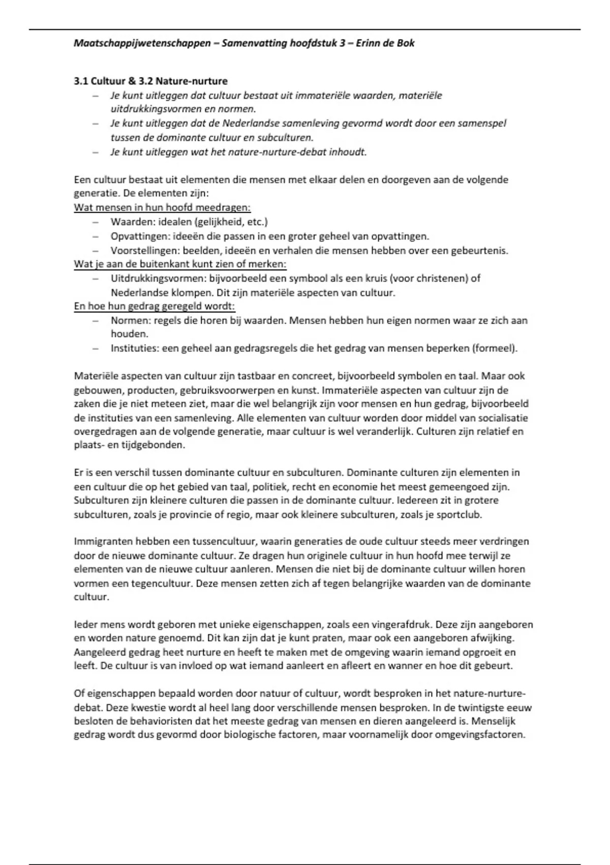 Maatschappijwetenschappen – Samenvatting hoofdstuk 3 – Erinn de Bok