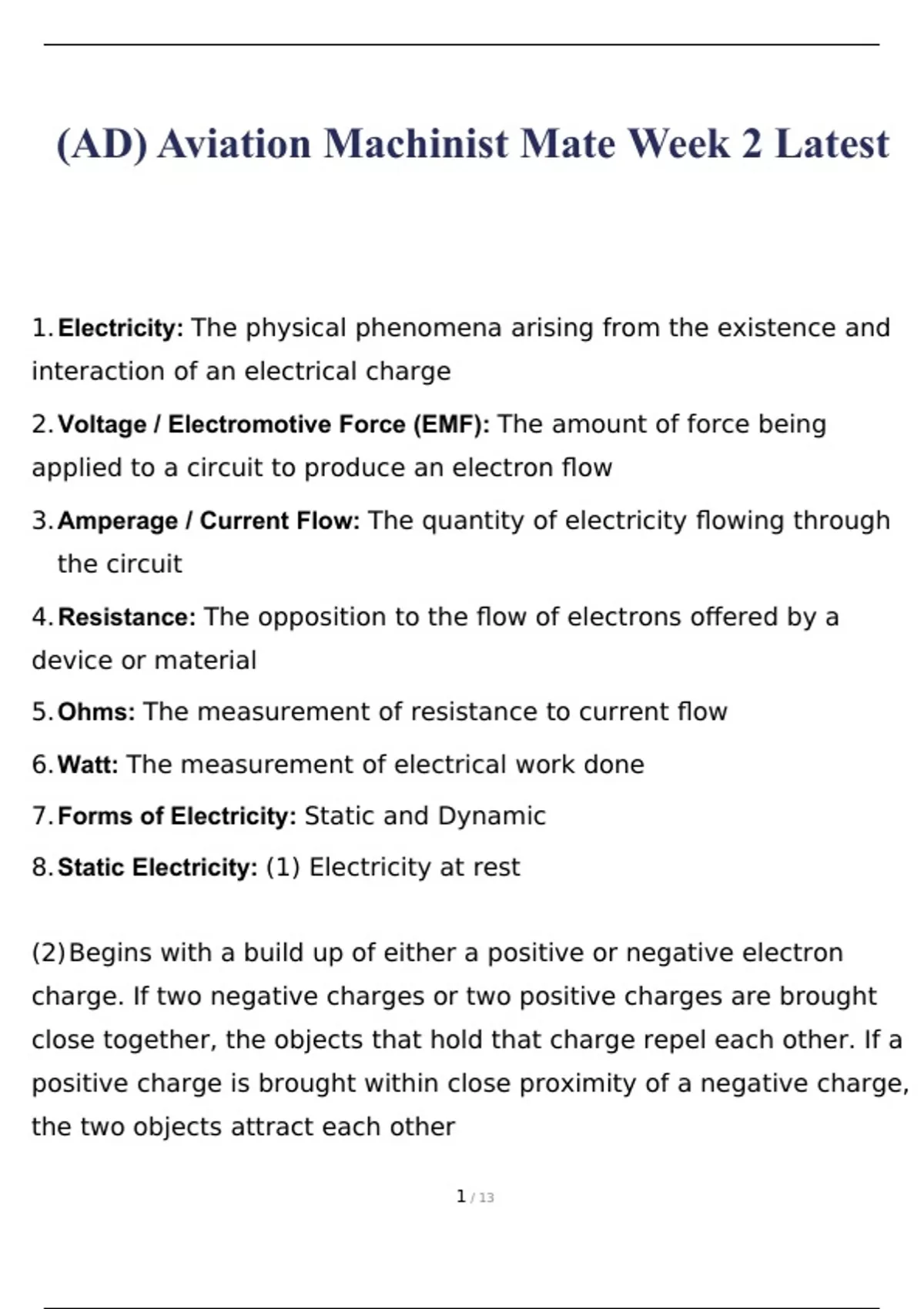 (AD) Aviation Machinist Mate Week 2 Latest 2023 with complete solution