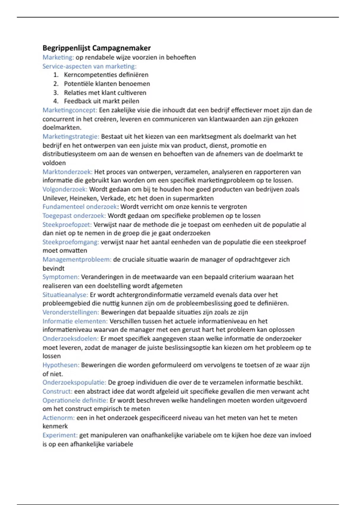 Hypothesen: Beweringen die worden geformuleerd om vervolgens te toetsen of ze waar zijn
