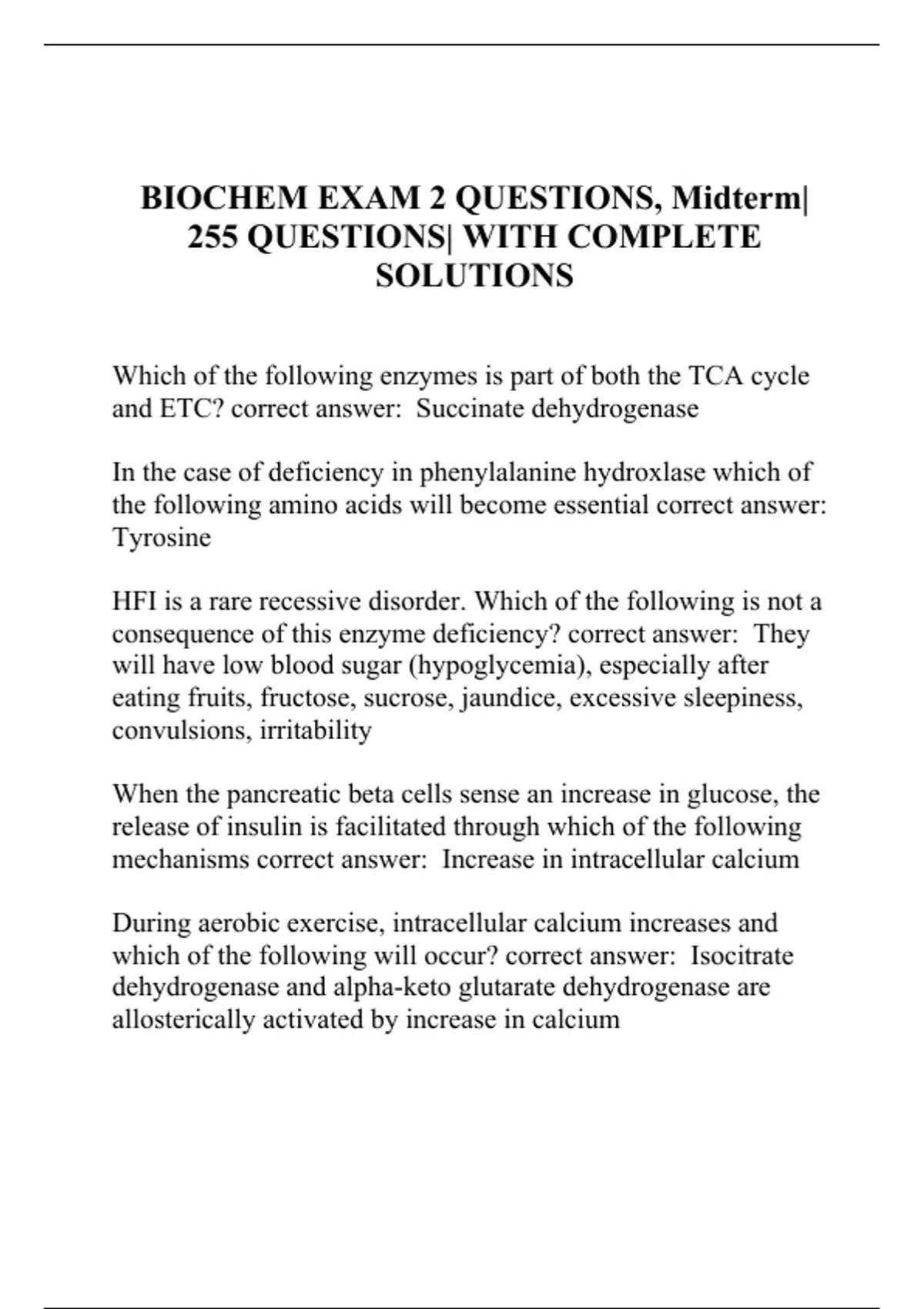 BIOCHEM EXAM 2 QUESTIONS, Midterm| 255 QUESTIONS| WITH COMPLETE SOLUTIONS