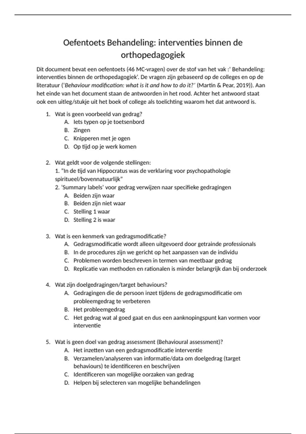 Dit document bevat een oefentoets (46 MC-vragen) over de stof van het vak :’ Behandeling: