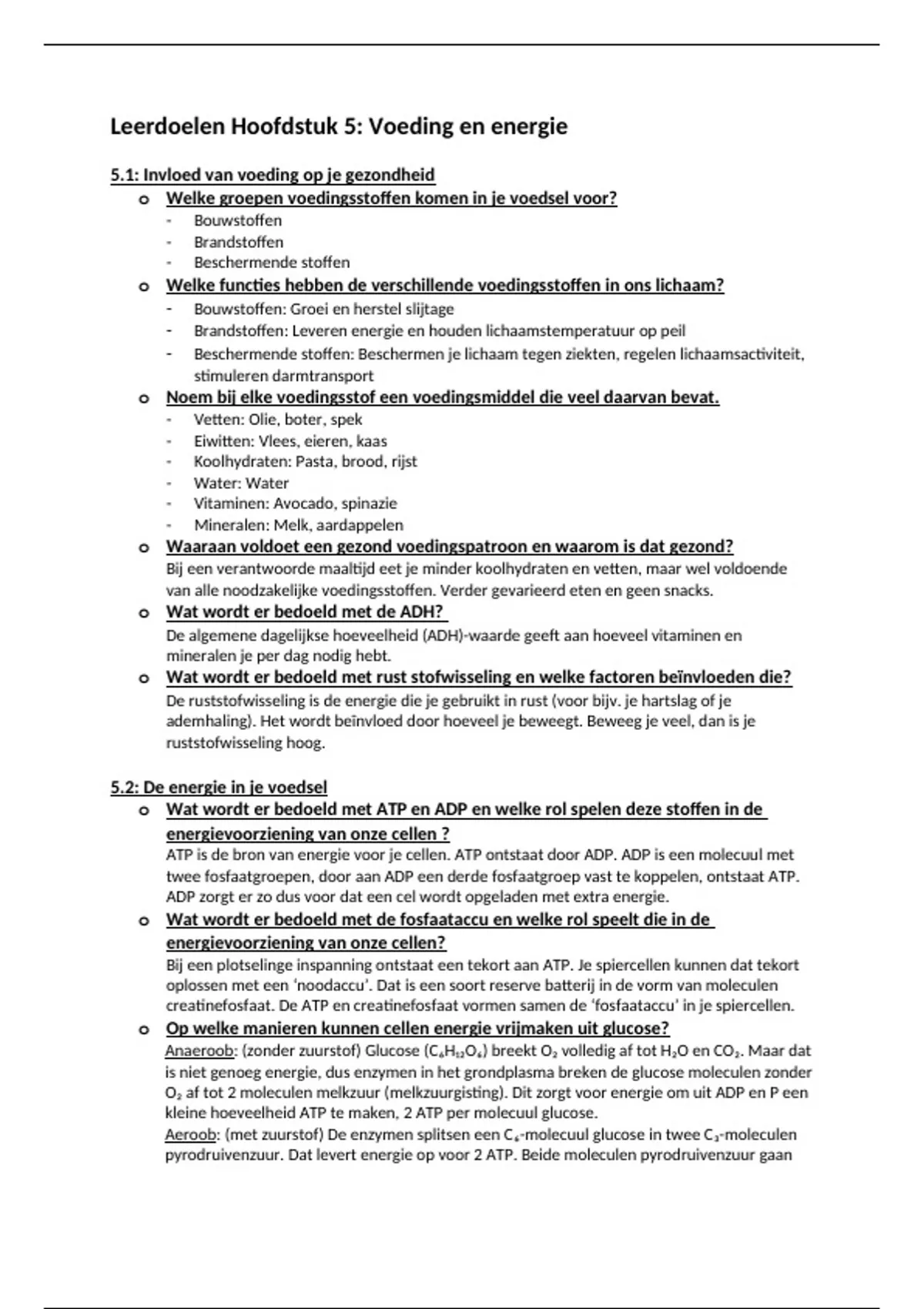 Leerdoelen Hoofdstuk 5: Voeding en energie