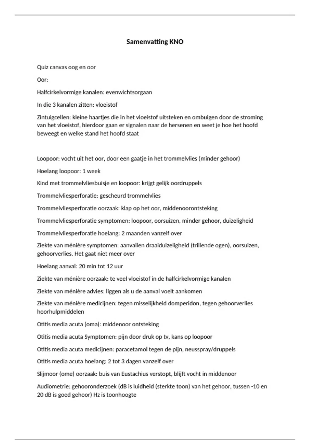 Samenvatting van 5 pagina's voor het vak bsda, anatomie/fysiologie aan de ROC van Twente (alles over KNO)
