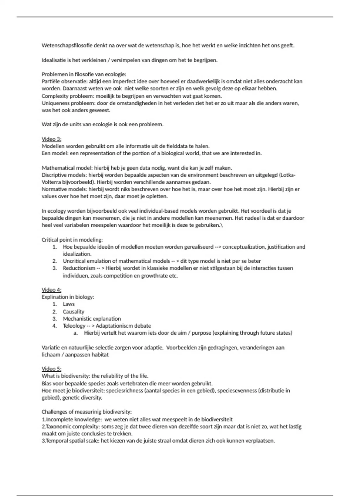 Samenvatting Philosophy of Science - Ecologie & Experiment - Biologie UU