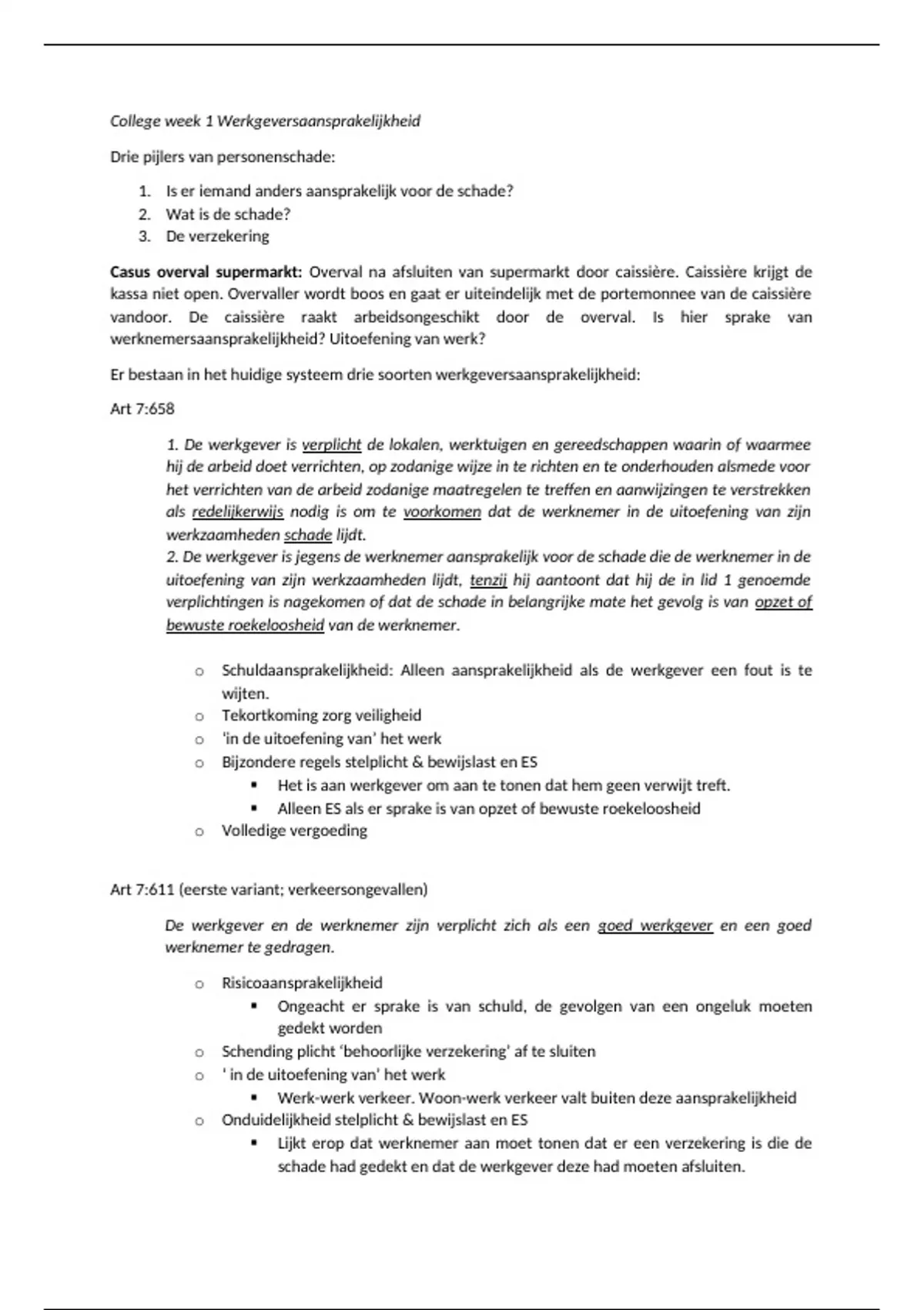College week 1 Werkgeversaansprakelijkheid