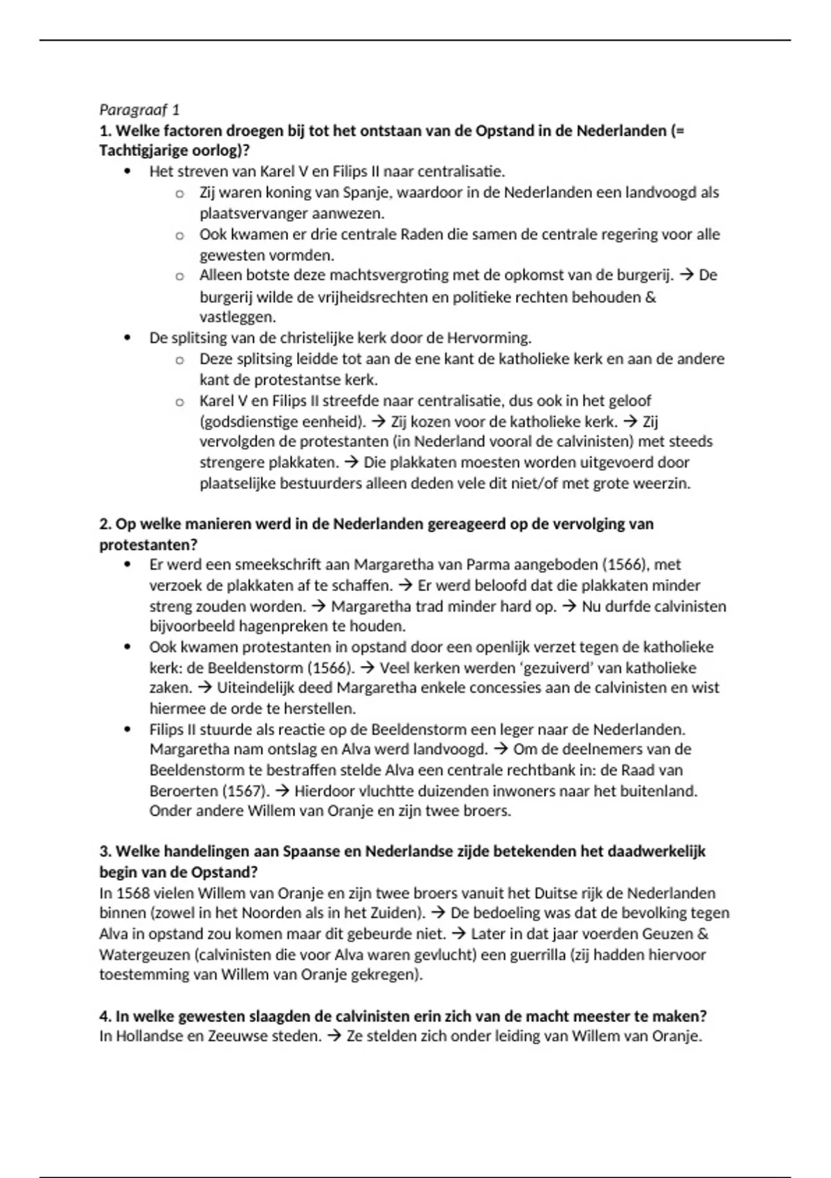 1. Welke factoren droegen bij tot het ontstaan van de Opstand in de Nederlanden (=