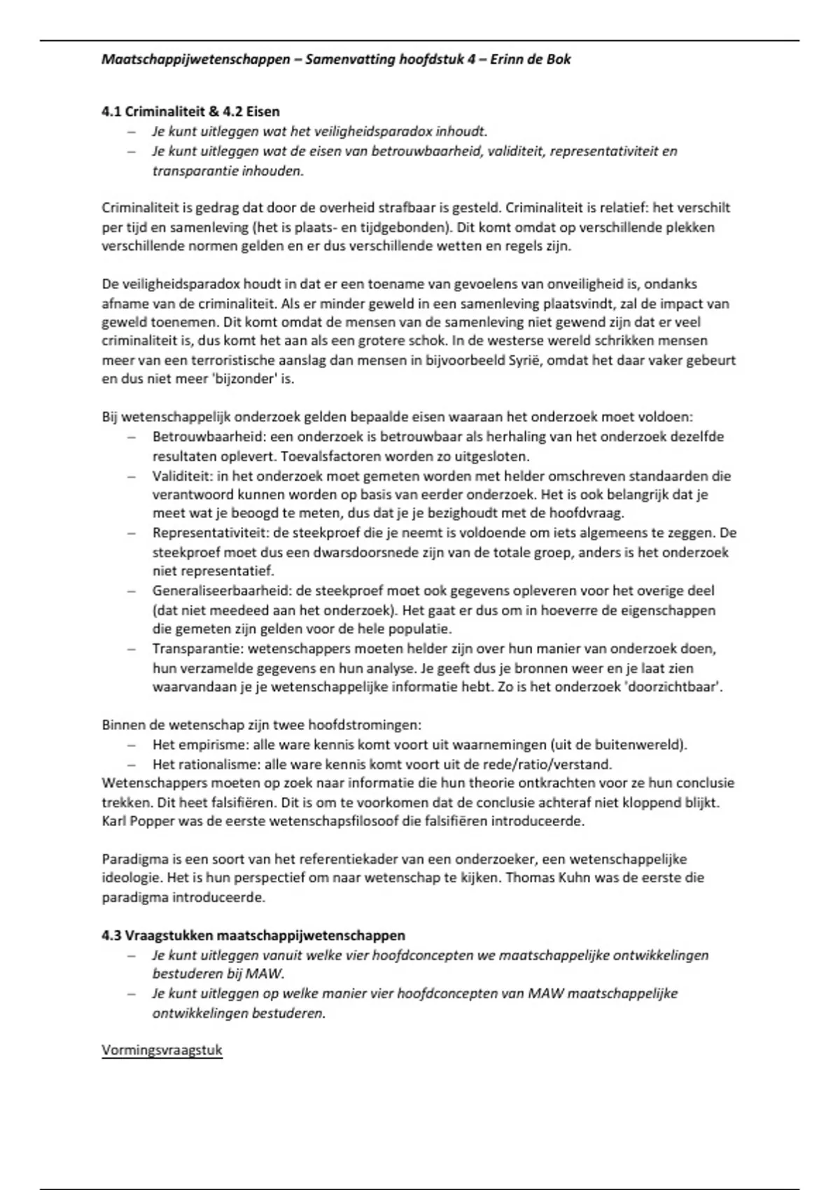 Maatschappijwetenschappen – Samenvatting hoofdstuk 4 – Erinn de Bok