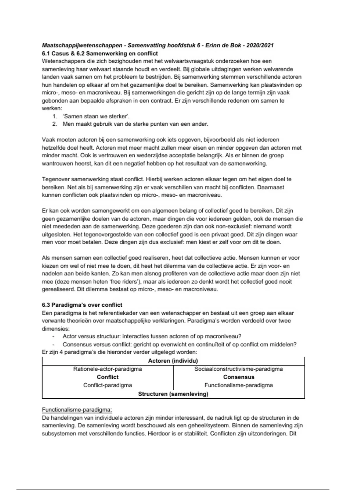 Maatschappijwetenschappen - Samenvatting hoofdstuk 6 - Erinn de Bok - 2020/2021