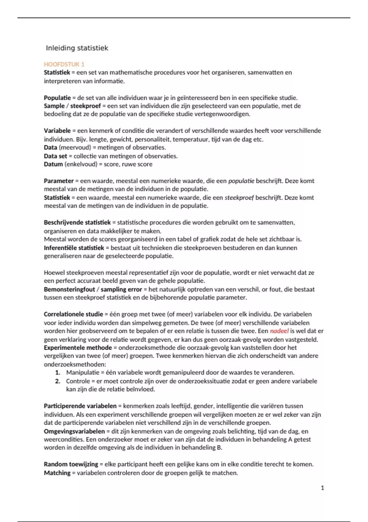 Populatie = de set van alle individuen waar je in geïnteresseerd ben in een specifieke studie.