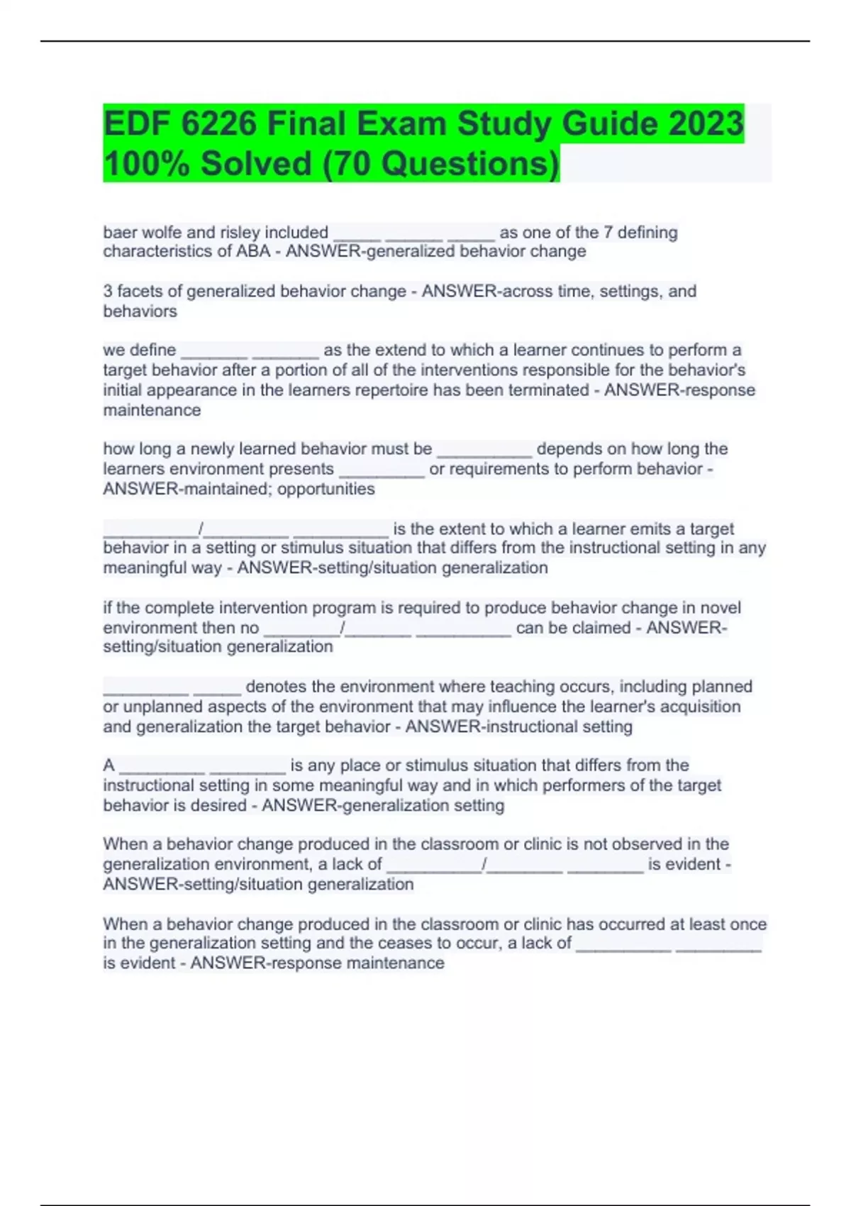 EDF 6226 Final Exam Study Guide 2023 100% Solved (70 Questions)