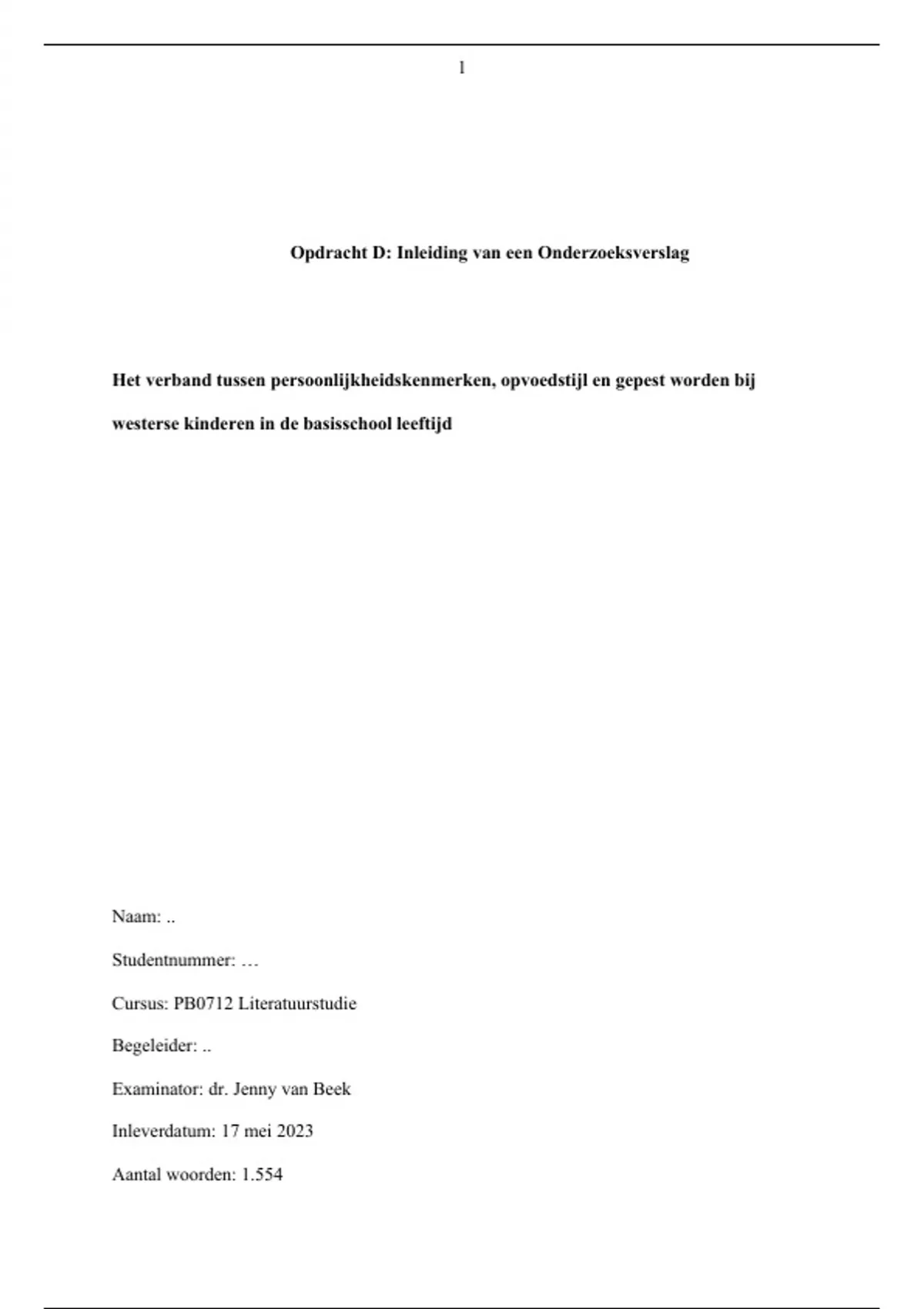 Examinator: dr. Jenny van Beek