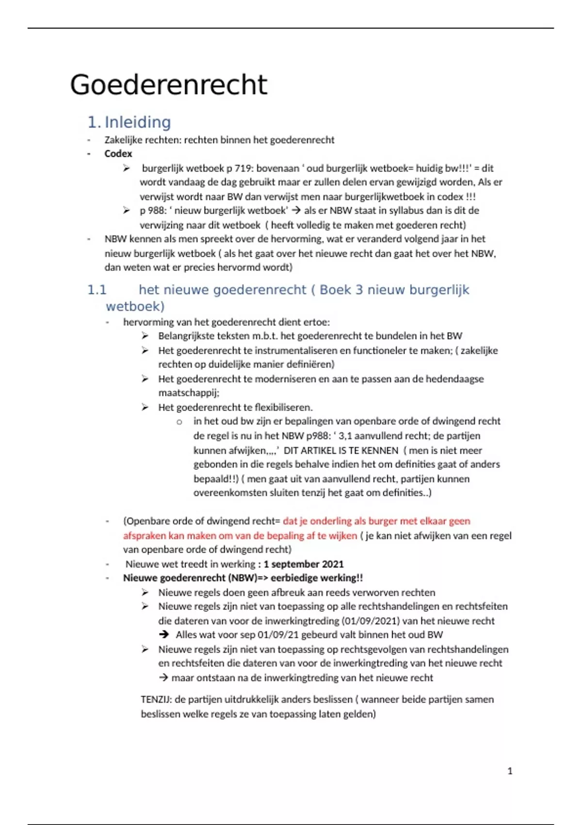 1.1 het nieuwe goederenrecht ( Boek 3 nieuw burgerlijk