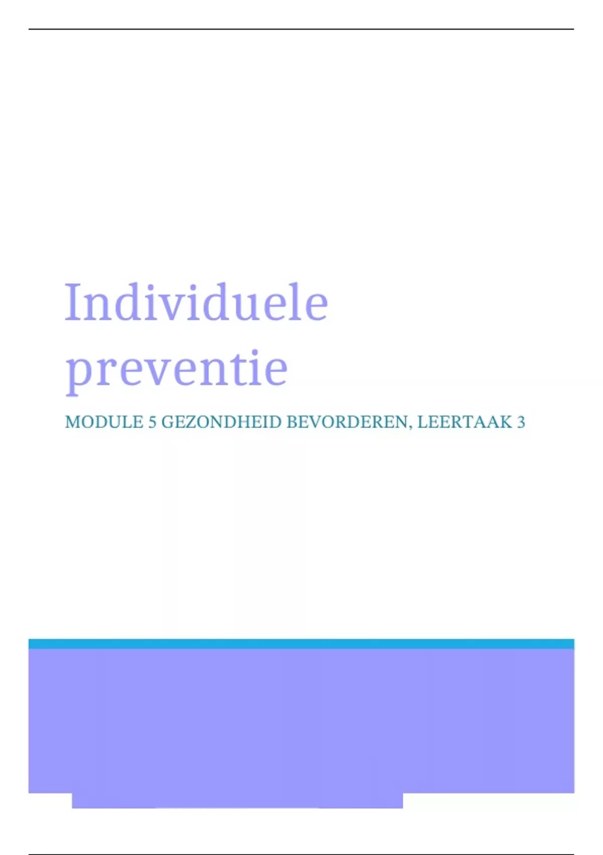 Verslag Module 6, leertaak 1, Individueel preventieplan, beoordeeld met 7,6! een