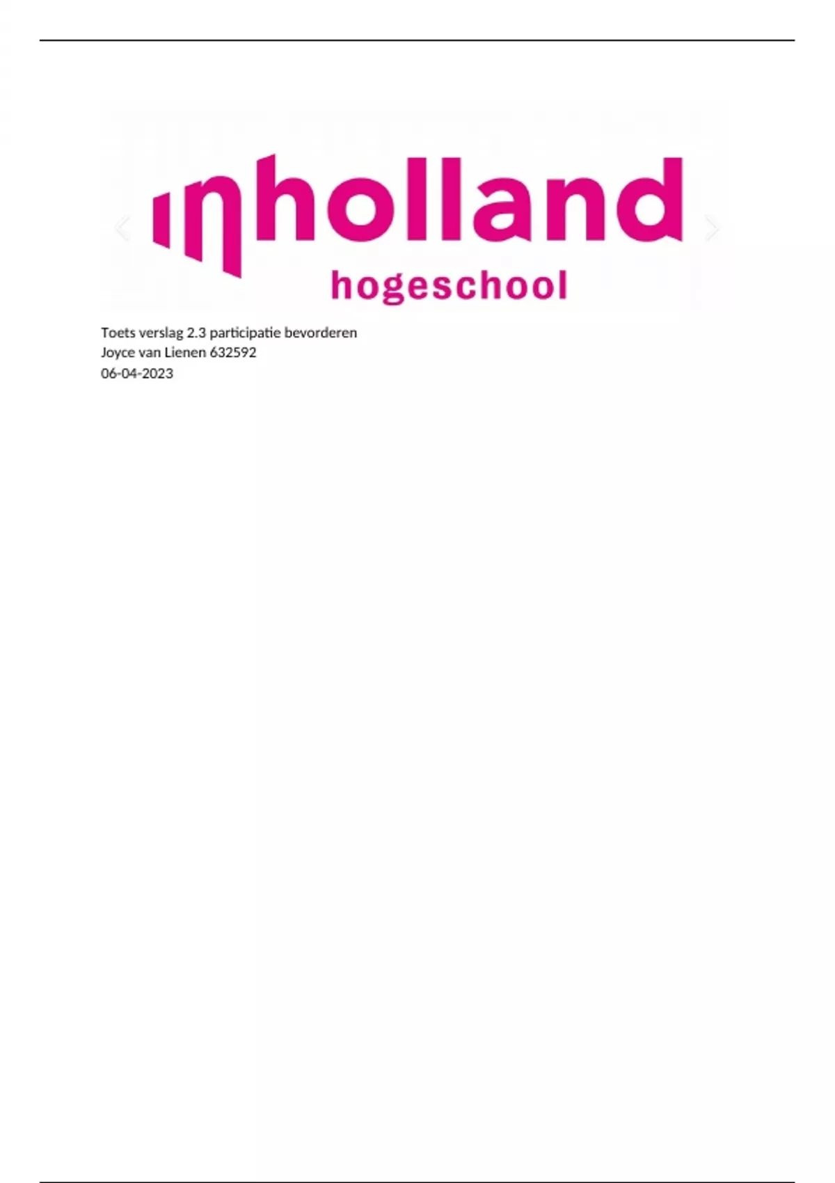 Toets verslag 2.3 participatie bevorderen. Behaald met een 7,5. Ik ben niet verantwoordelijk voor het plegen van plagiaat!